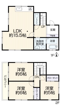 | 間取 | 3LDK (LDK15.5帖、洋室6帖、洋室6帖、洋室5帖) | ||