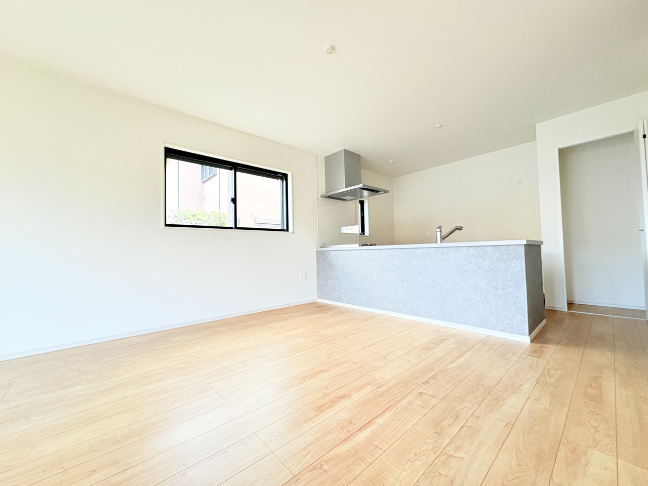 家族や友人、両親、親戚とこれから沢山の時間を紡ぐのだろう。そこを彩るのは窓から見える青い空、心地よい緑。そんなイメージが膨らむリビングスペース。