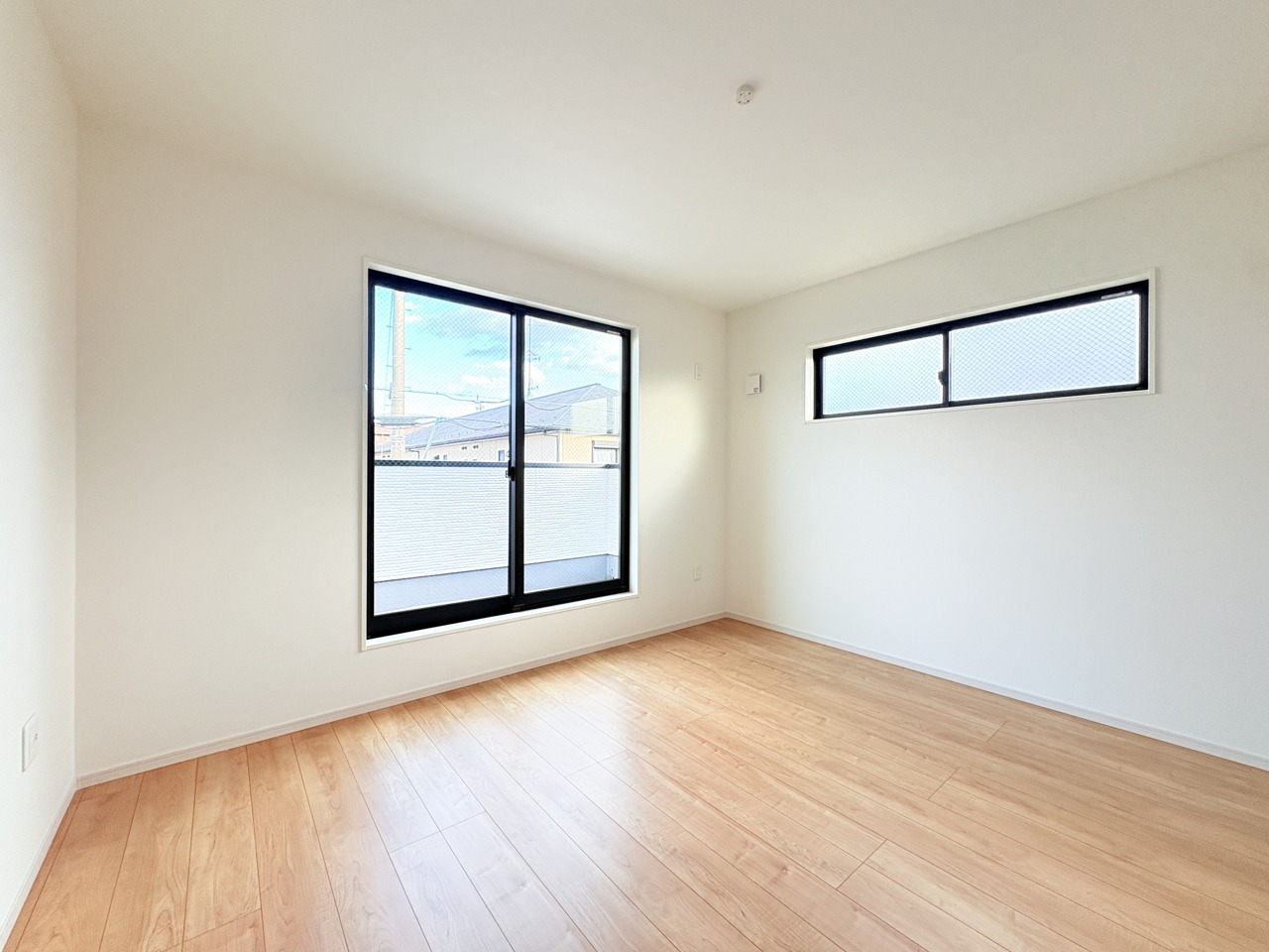 バルコニーに面した洋室。開口部からは優しい陽光が差し込み心地よい風が通り抜けます。