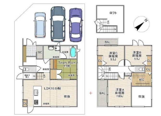| 間取 | 4SLDK (LDK16.69帖、和室4.5帖、洋室7.83帖、洋室5.5帖、洋室5.5帖) | ||