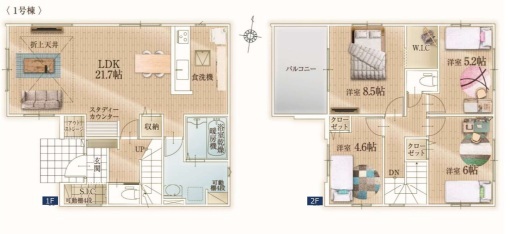 | 間取 | 4LDK (LDK21.7帖、洋室8.5帖、洋室6帖、洋室5.2帖、洋室4.6帖) | ||
