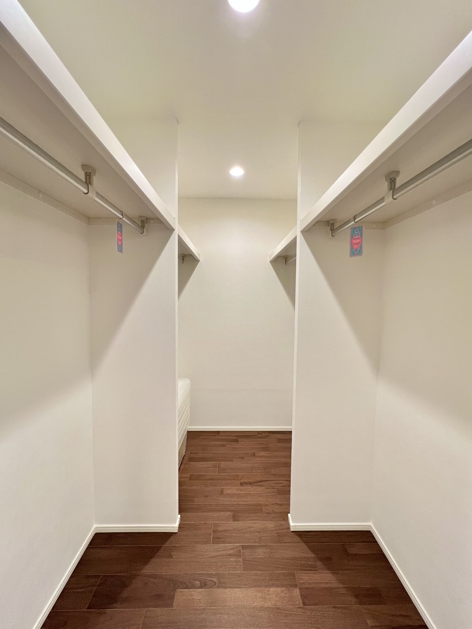 季節物の衣類もスッキリ収納できる、ウォークインクローゼット。