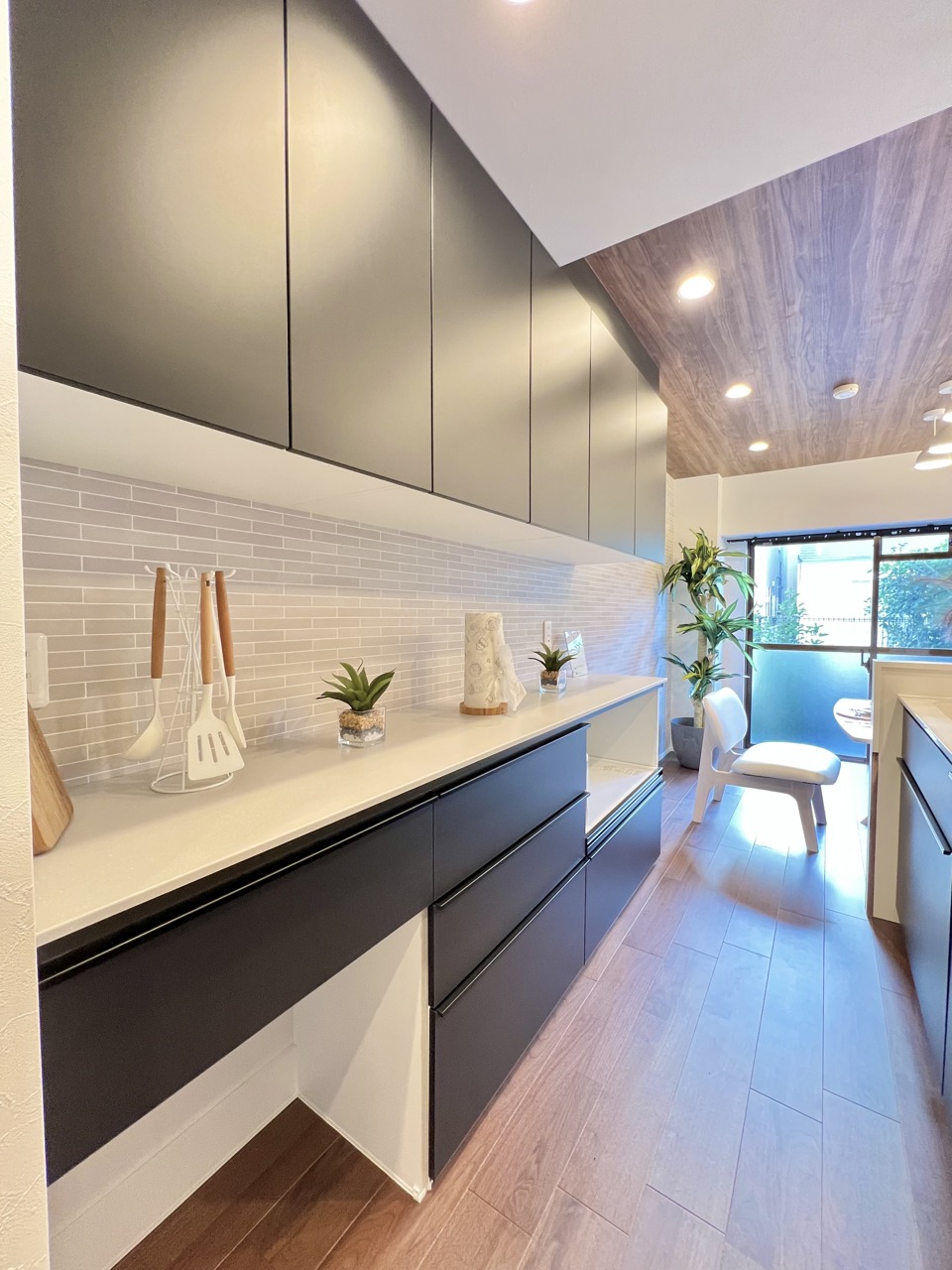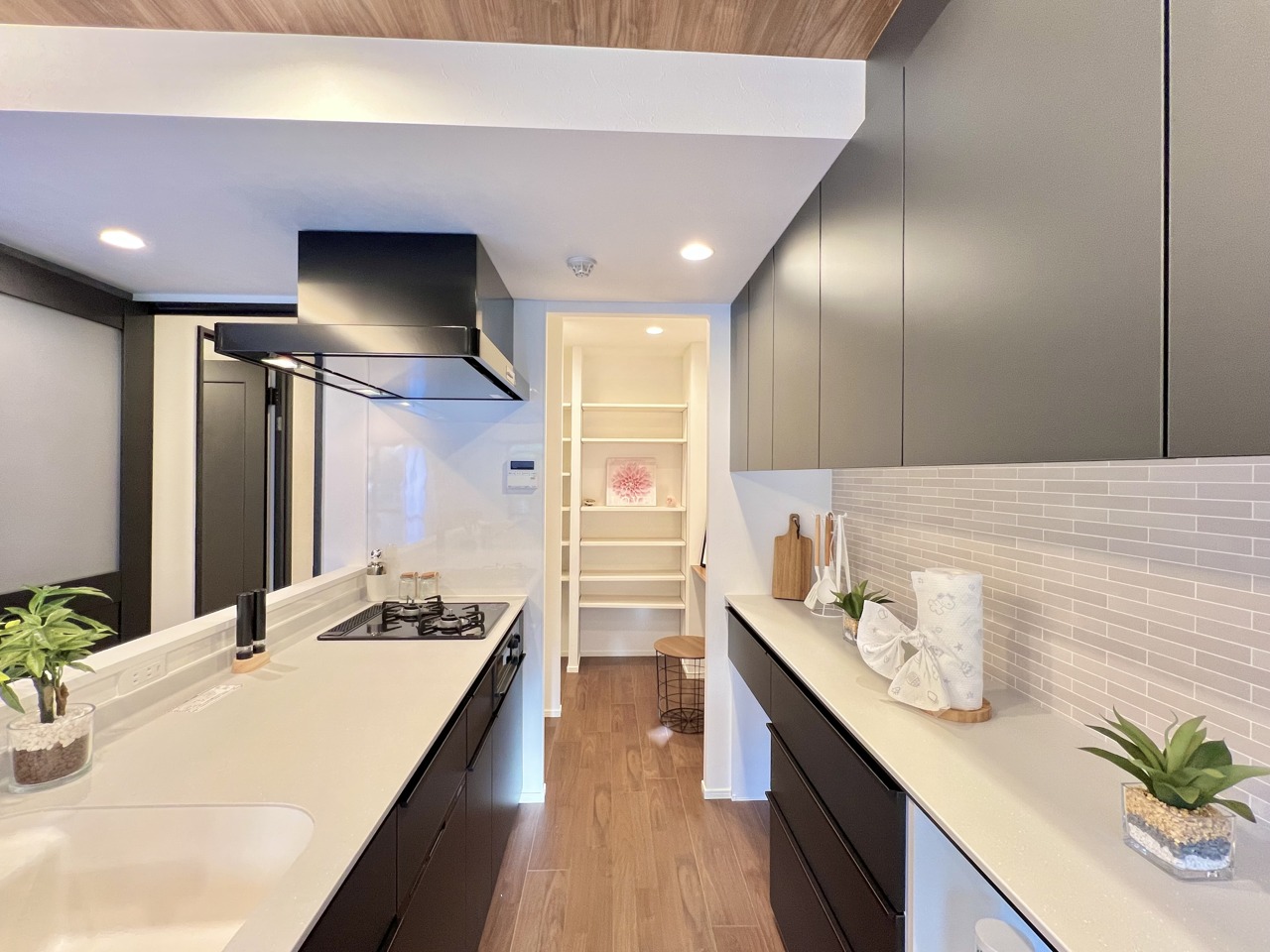 キッチン裏の空間もしっかり確保。カップボードも大きなものを置けそうです。