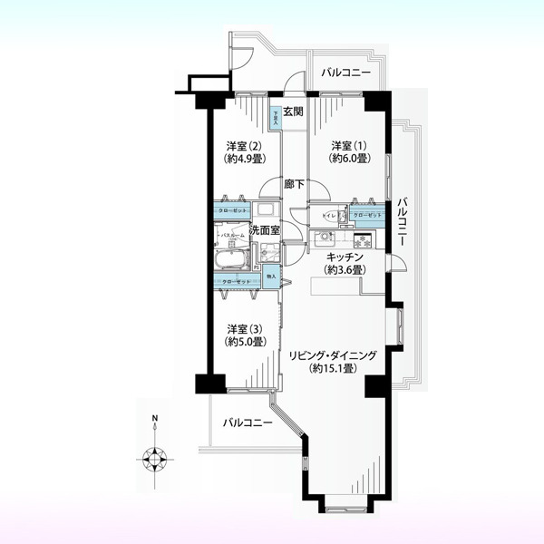 | 間取 | 3LDK (LDK15.1帖、洋室6帖、洋室5帖、洋室4.9帖) | ||