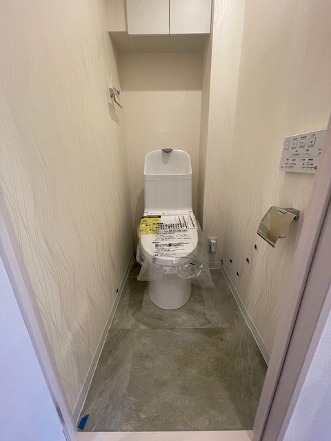 お掃除らくらく。便座脇の操作盤をなくした、リモコンタイプのお手洗いに新規交換しました。