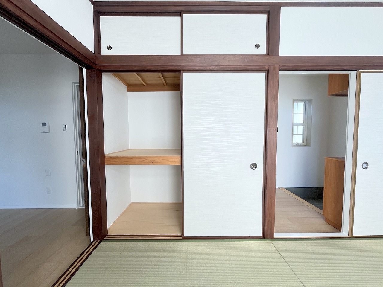 リビング横の和室。廊下にもつながるので客間に使うことも可能。
