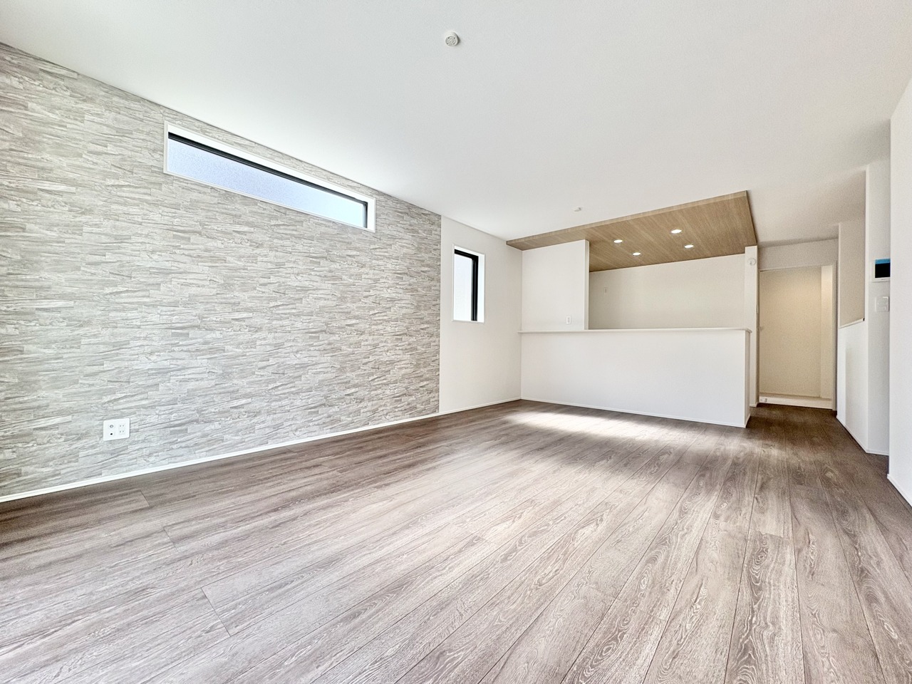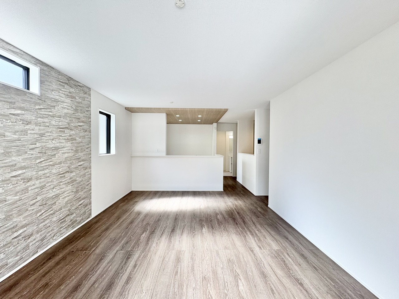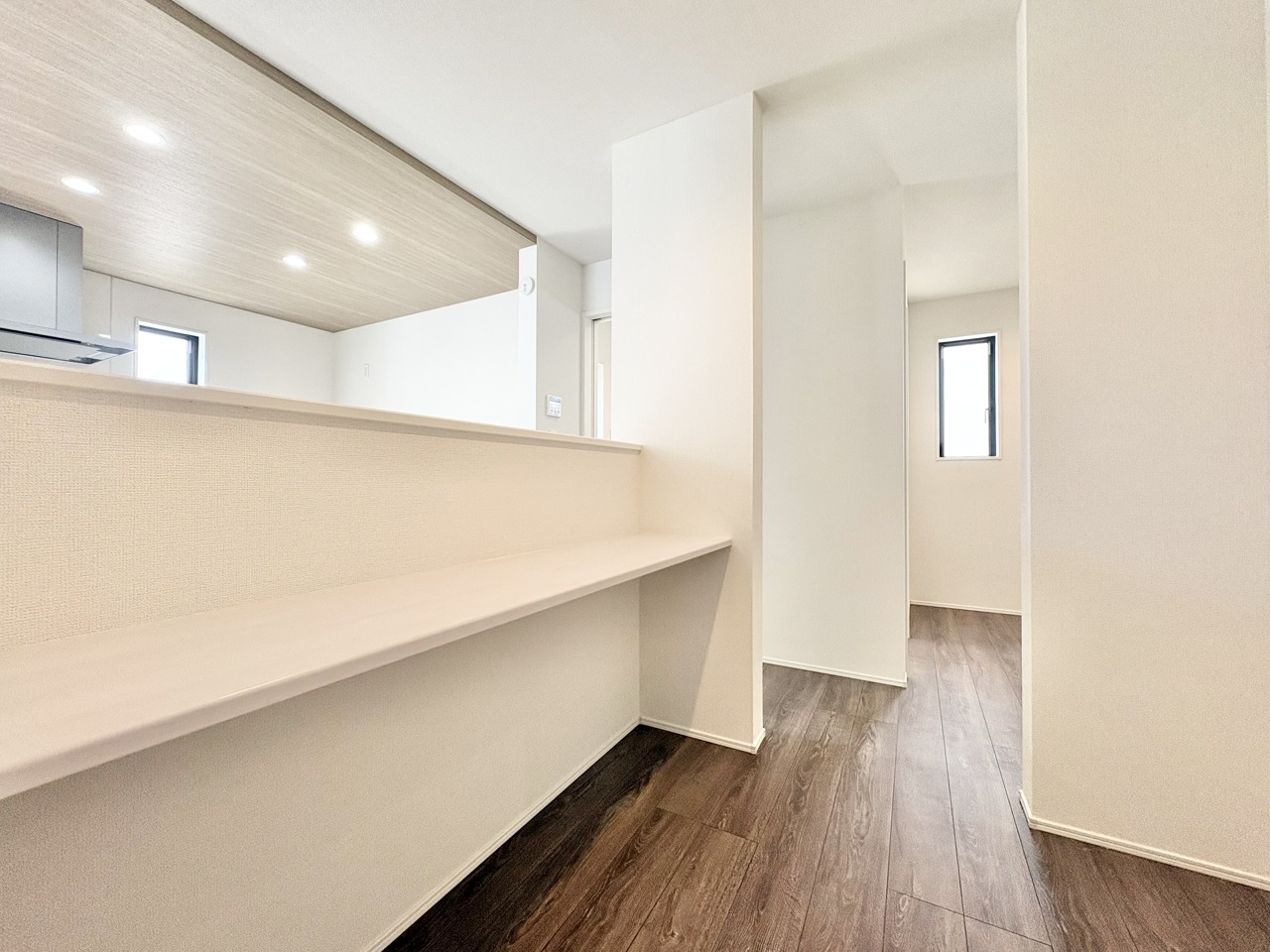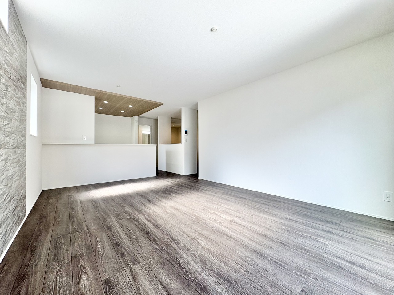 - 南道路に面し、明るい陽光が差し込む心地よい住環境。LDKは約18.75帖と広々しており、リビングイン階段で家族のつながりを感じられます。パントリーやカウンター付きフリースペースなど、暮らしやすさを高める工夫も魅力。建物面積99.36平米、収納と動線に配慮されたバランスの良い住まいです。