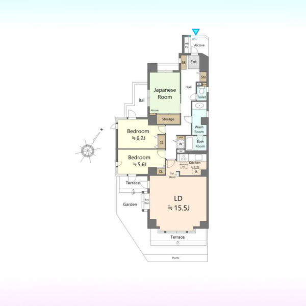 | 間取 | 3LDK (LDK15.5帖、和室6帖、洋室6.2帖、洋室5.6帖) | ||