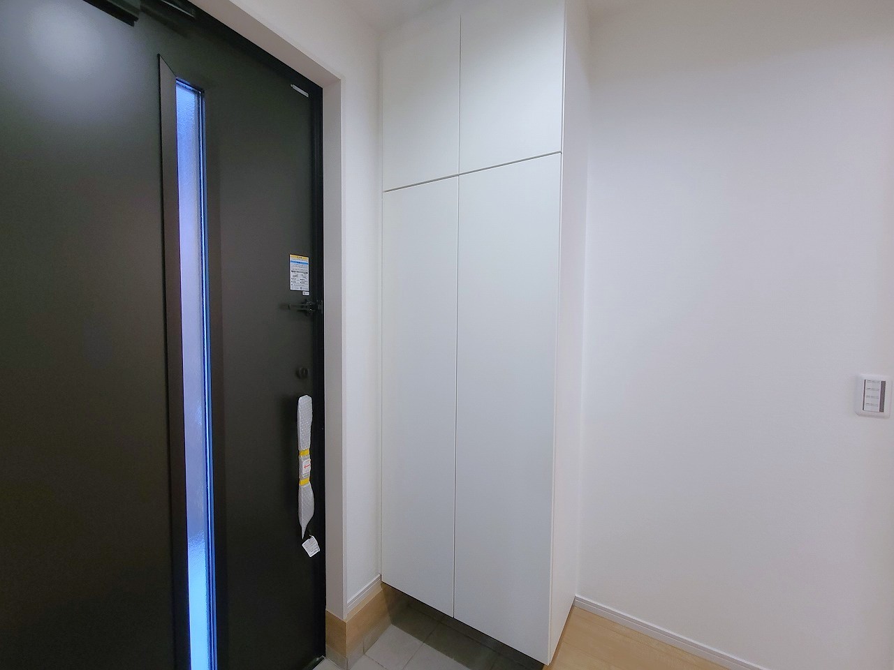 明るく開放的な玄関、靴の脱ぎ履きもしやすく、収納も豊富でご家族皆様の靴をスッキリ収納できます。