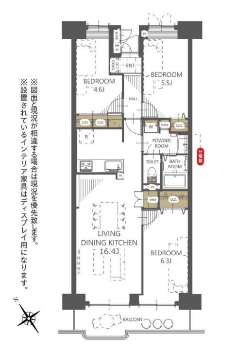 | 間取 | 3LDK (LDK16.4帖、洋室6.3帖、洋室5.5帖、洋室4.6帖) | ||