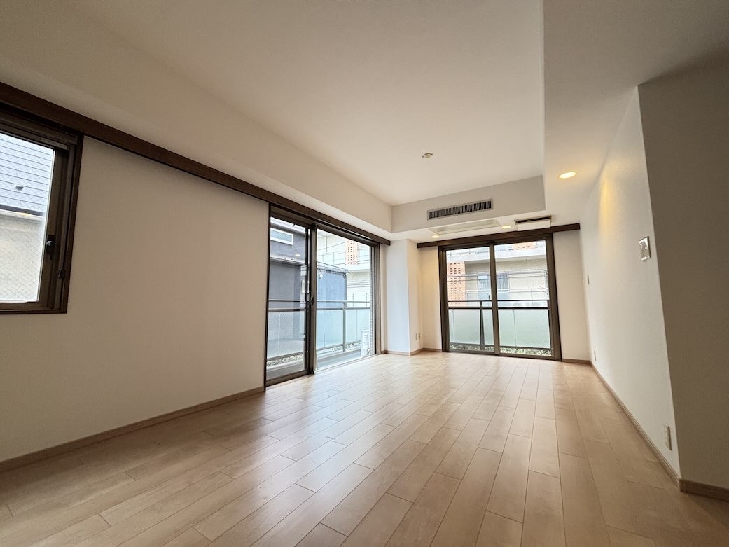 丸紅旧分譲の低層レジデンス、陽当たりの良い南向き角部屋住戸、専有面積91平米のゆとりある3LDKです。