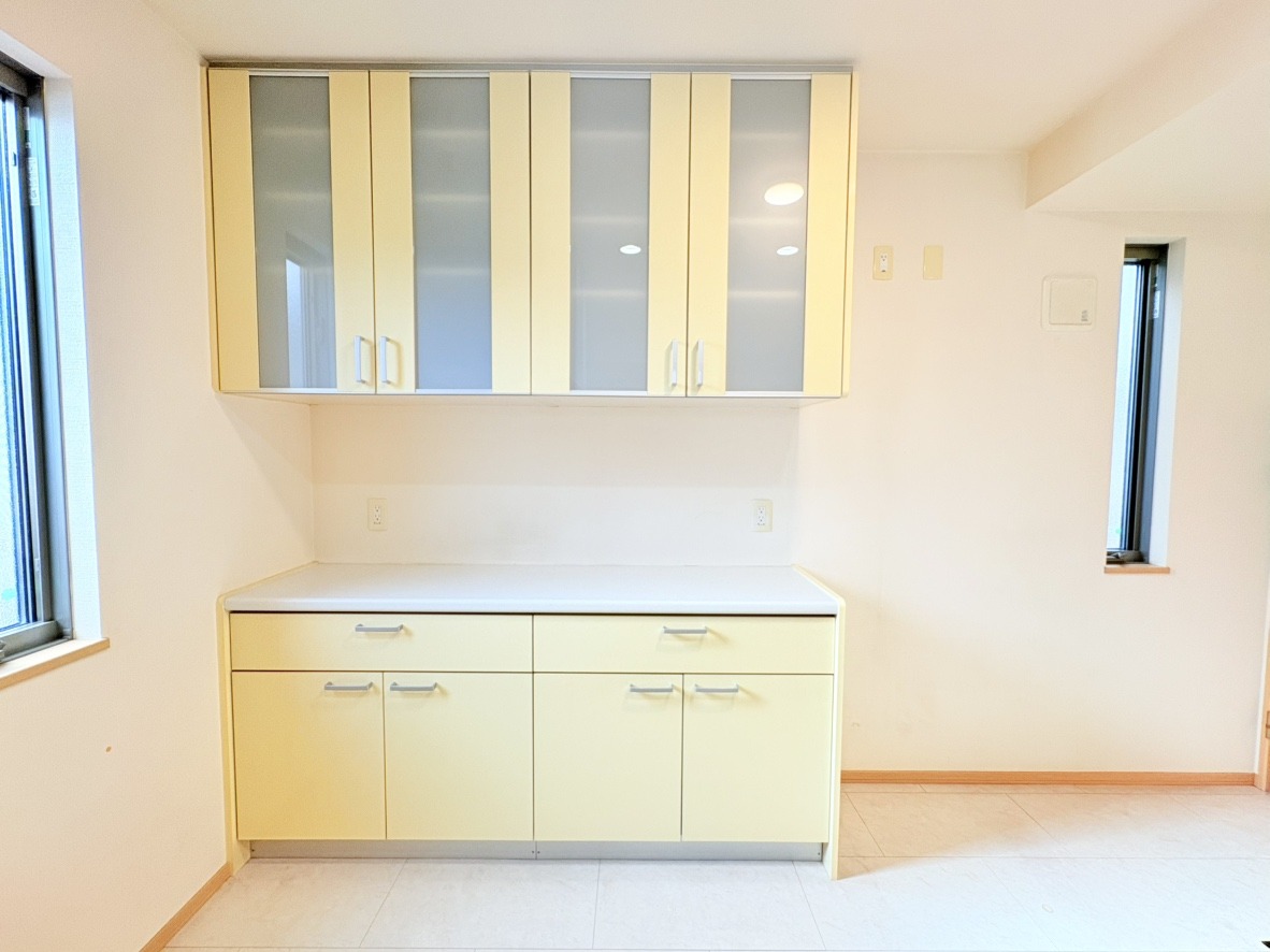 手を伸ばせばそこに収納が。安定した使用感の吊戸棚つきのキッチン空間。