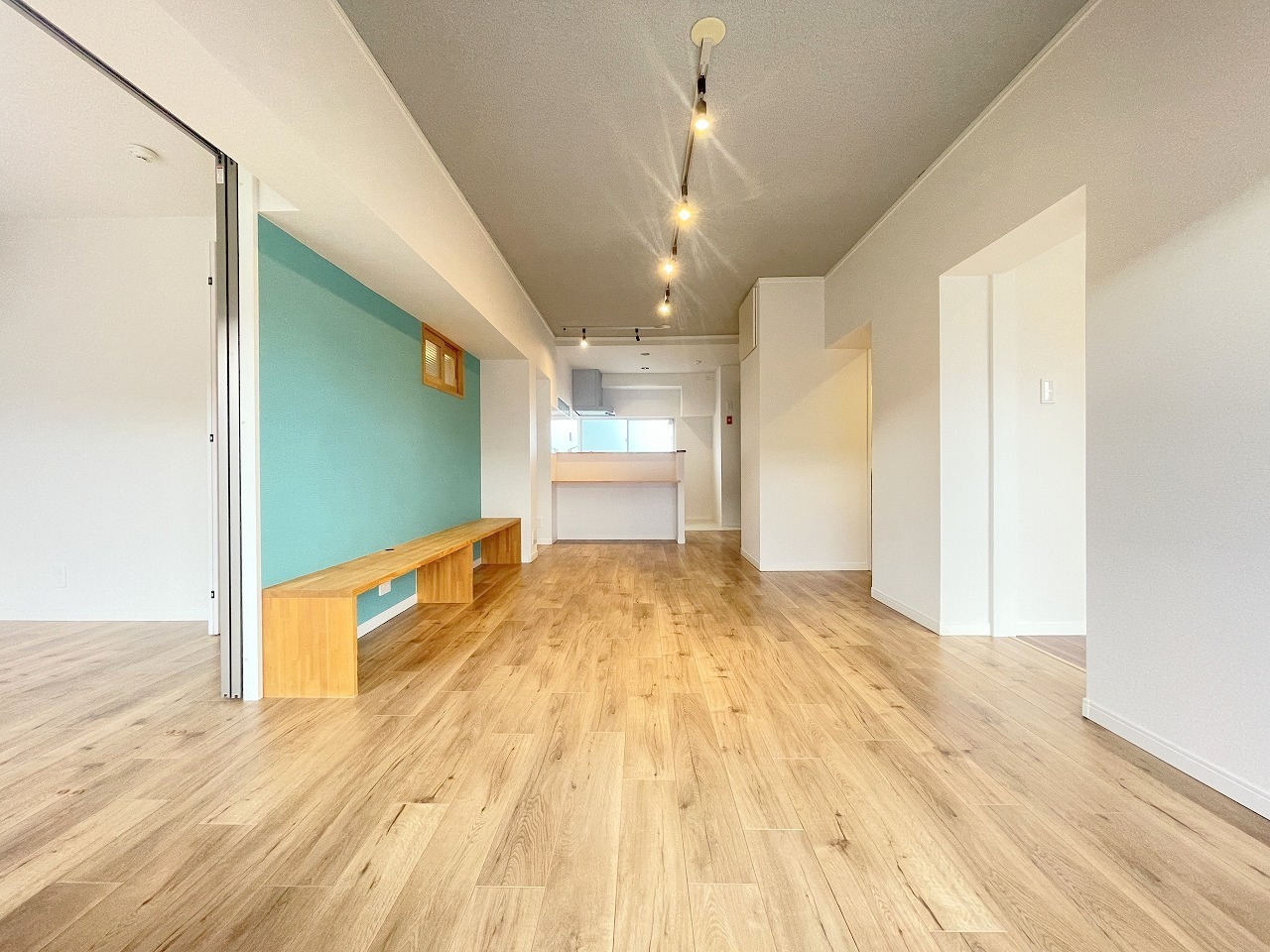 アクセントクロスが際立つLDK空間。