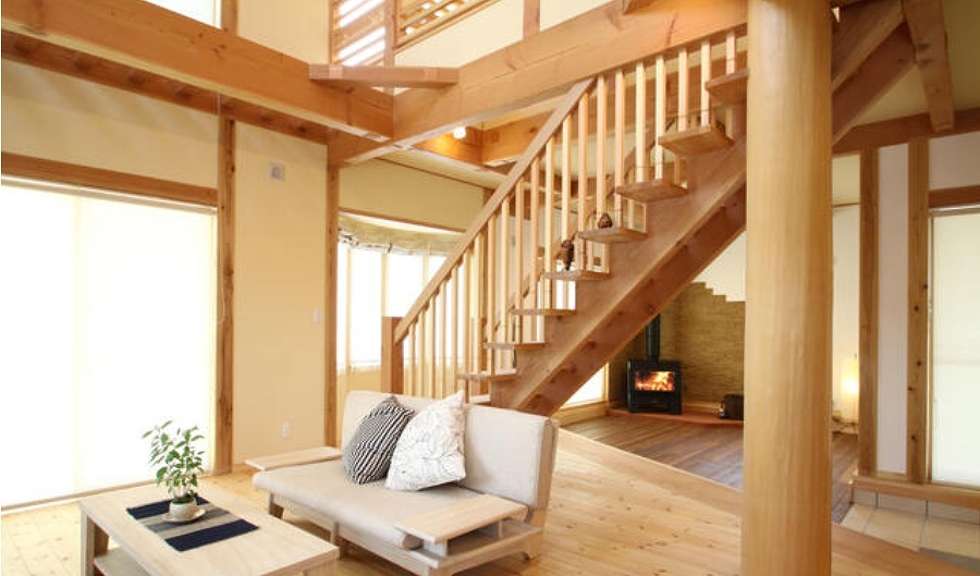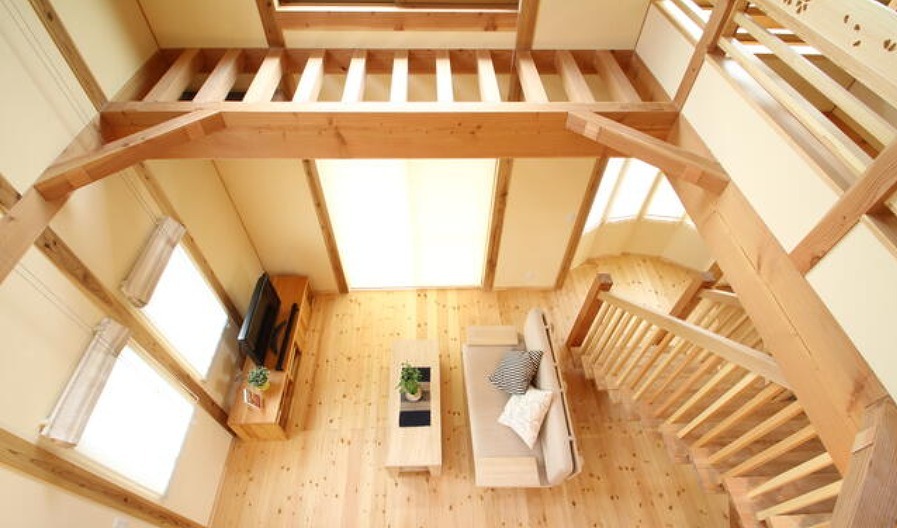 ・無垢材を使用した吹き抜け、小屋裏収納