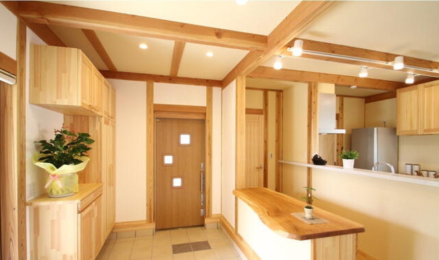 開放的なこの空間がお客様をお出迎えします。リビングが自然と人が集まるリビングイン階段採用プラン。