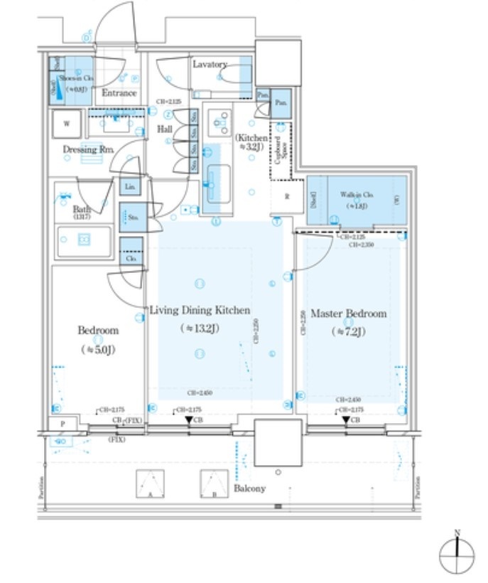 | 間取 | 2LDK (LDK13.2帖、洋室7.2帖、洋室5.0帖) | ||