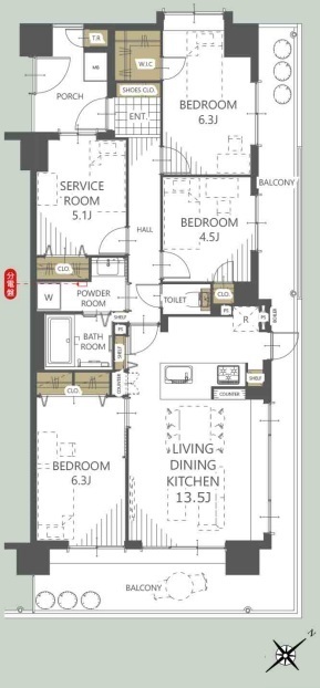 | バルコニー面積 | 29.69m² 南東向き | ||