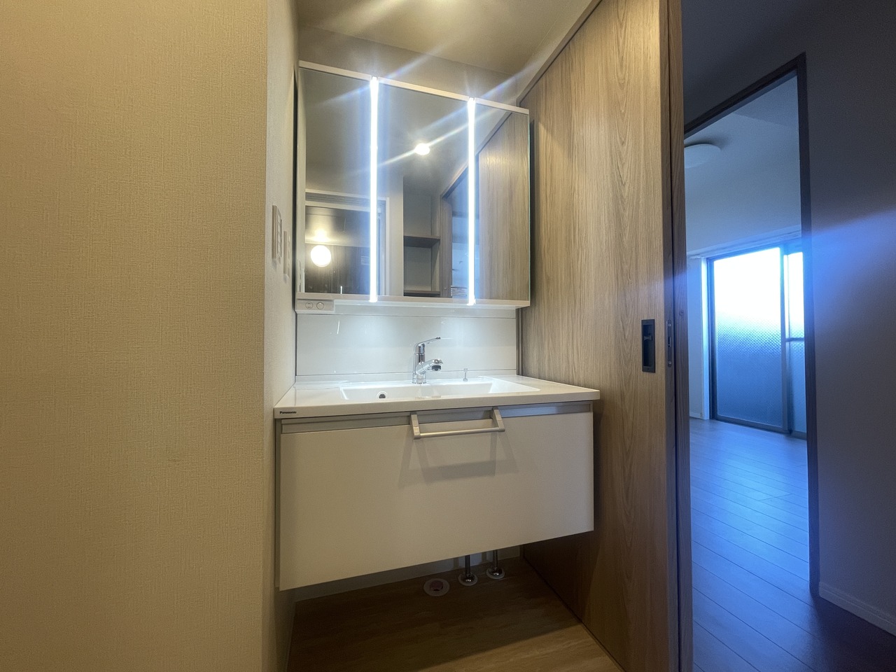 収納力と機能性に優れた、お手入れラクラク洗面化粧台。