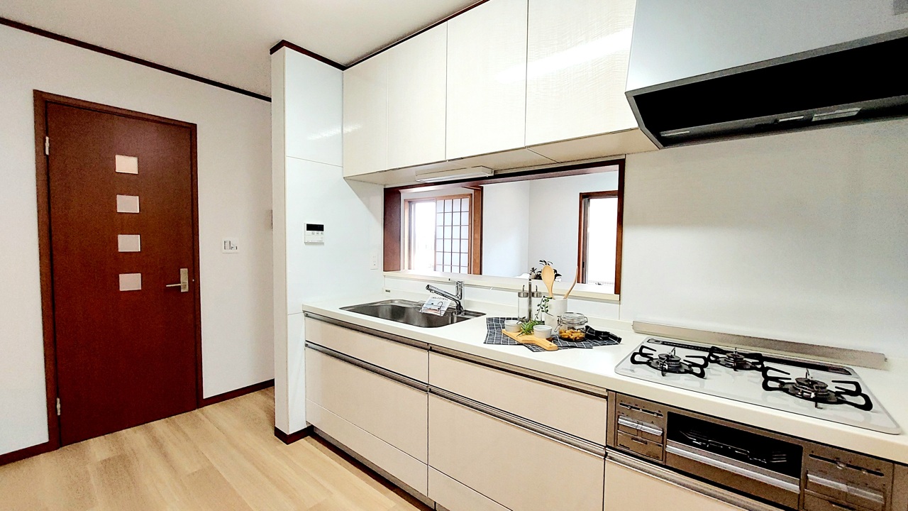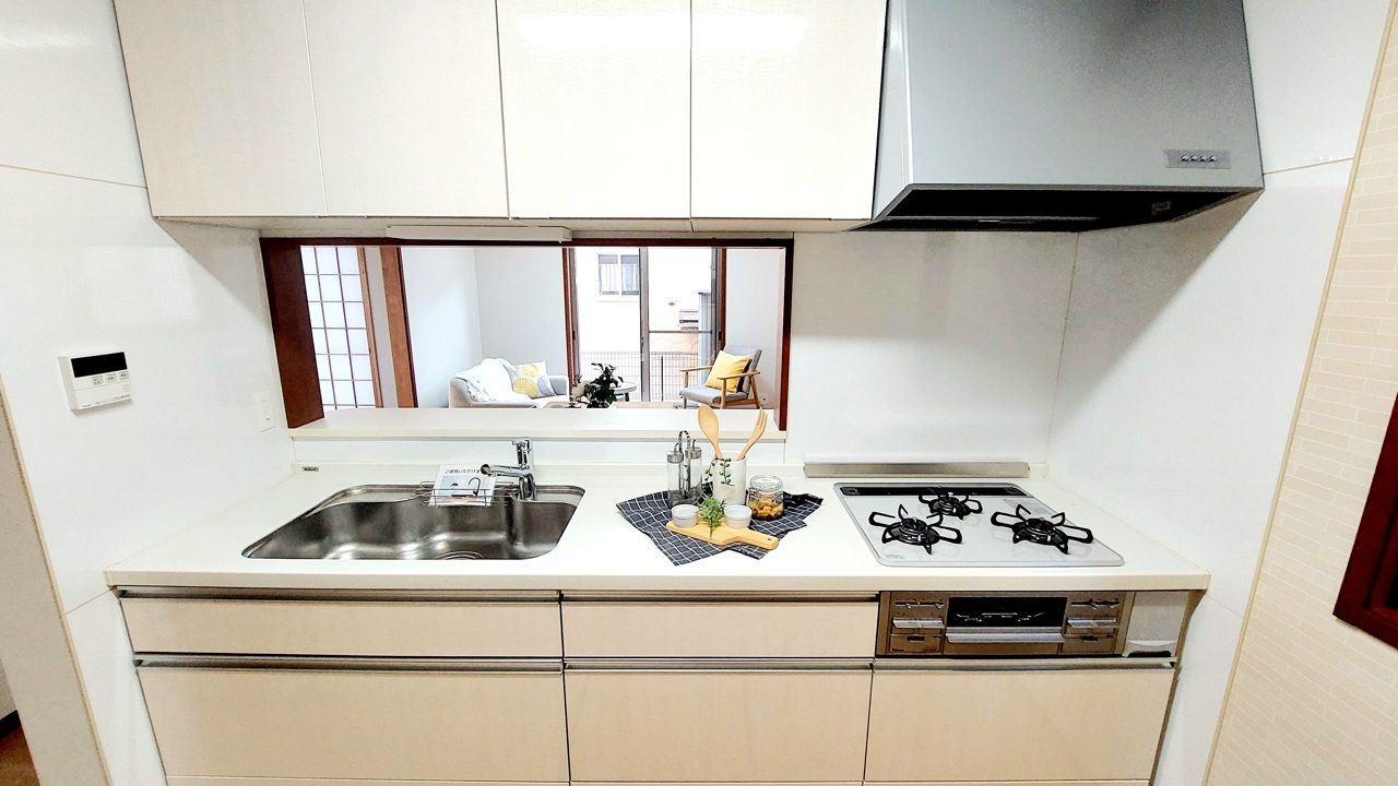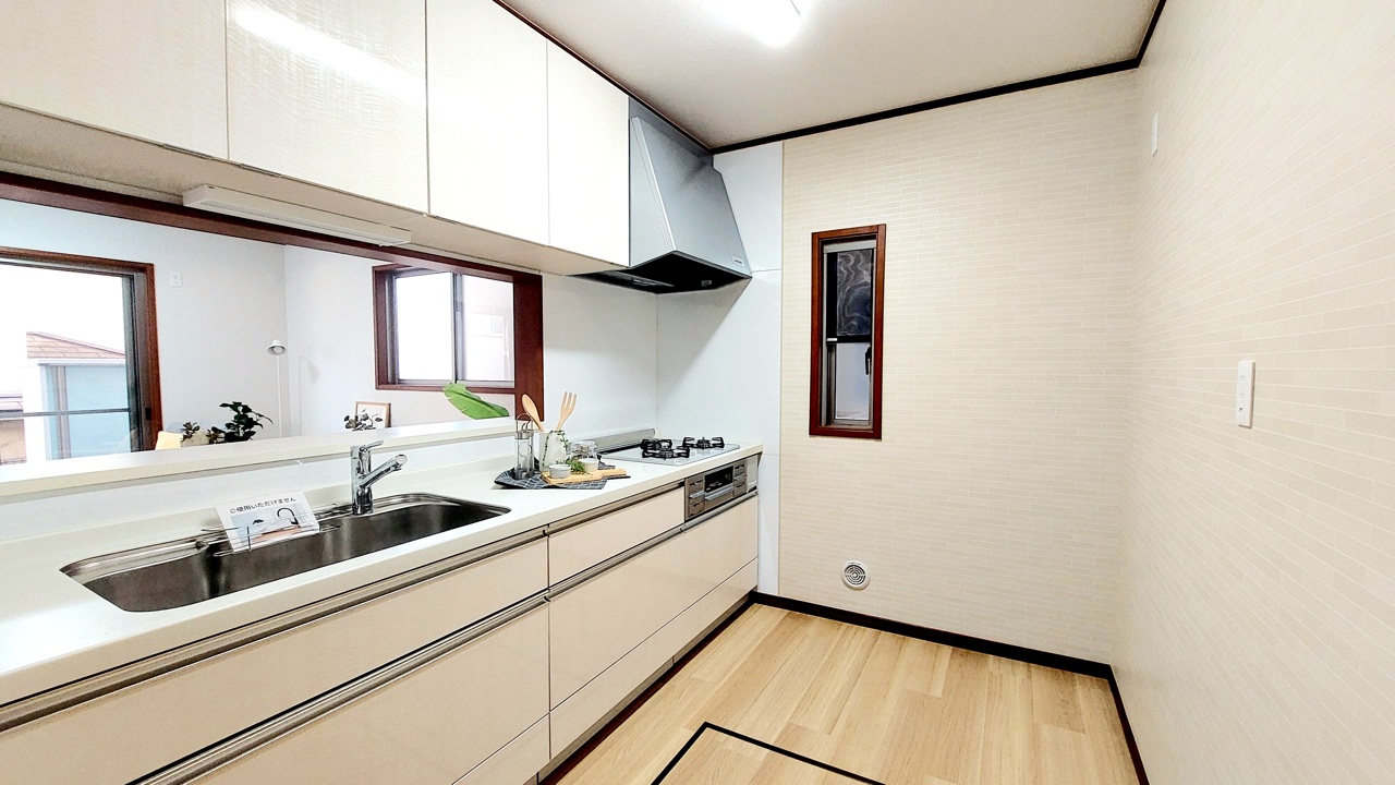 明るい光が降り注ぐ窓があるキッチンはお料理を作る時の気持ちもいつもより明るくなります。近くに窓があるので換気もしやすいですね。
