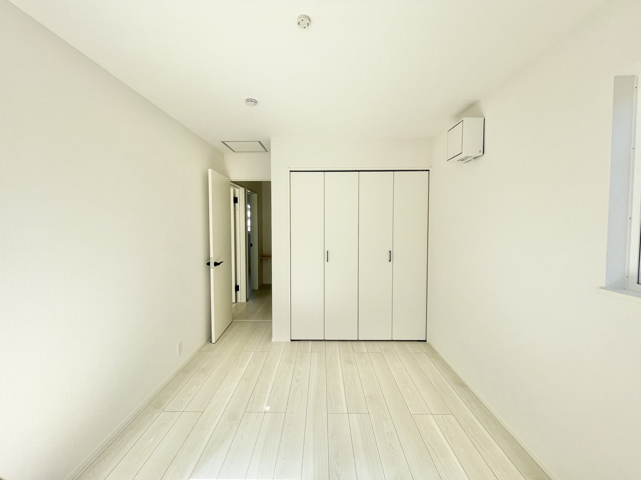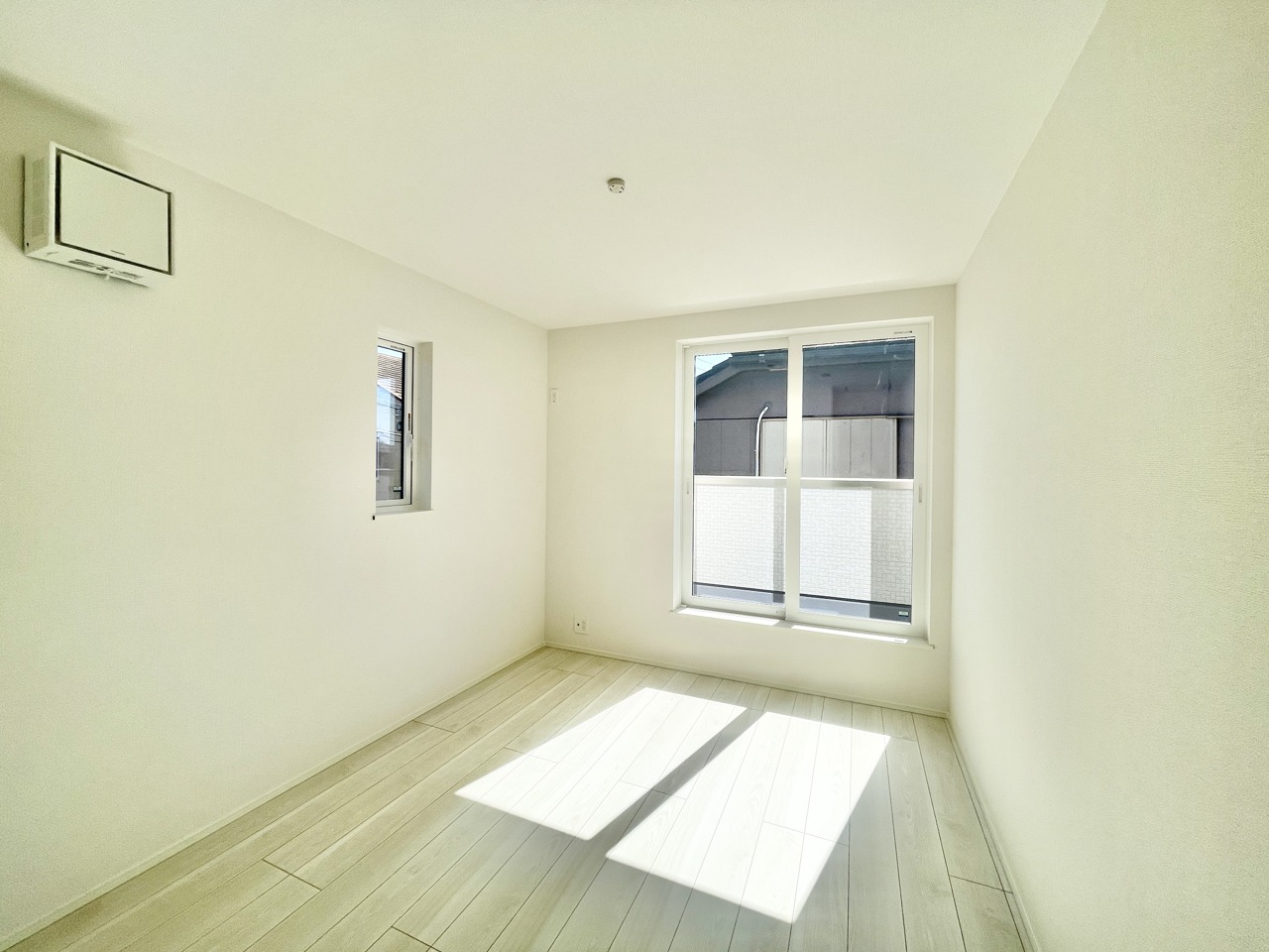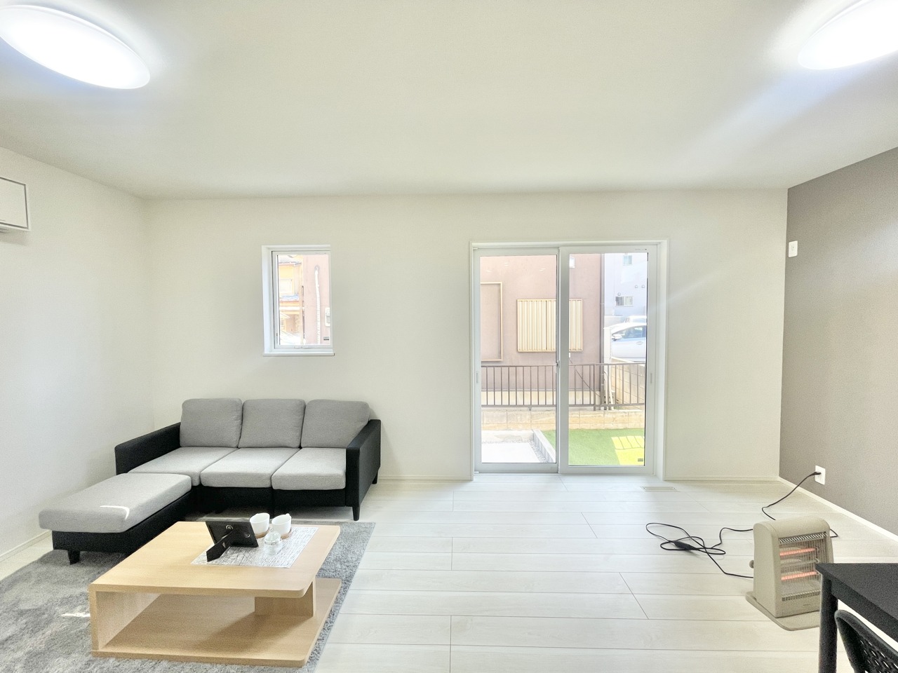 新築の木の匂いのする室内。写真では伝わらないので、ぜひ現地でお確かめください。 心地よい光が満ち、穏やかな時間が流れる空間