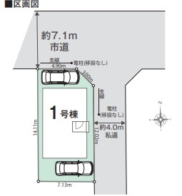 | 接道 | 北側7.1M公道に4.9M接道 東側4M私道に12.02M接道 |