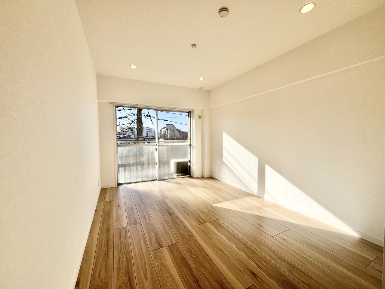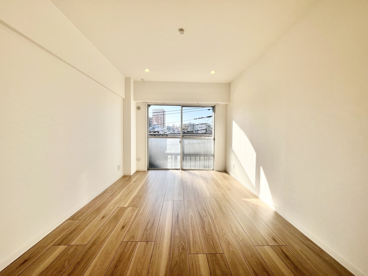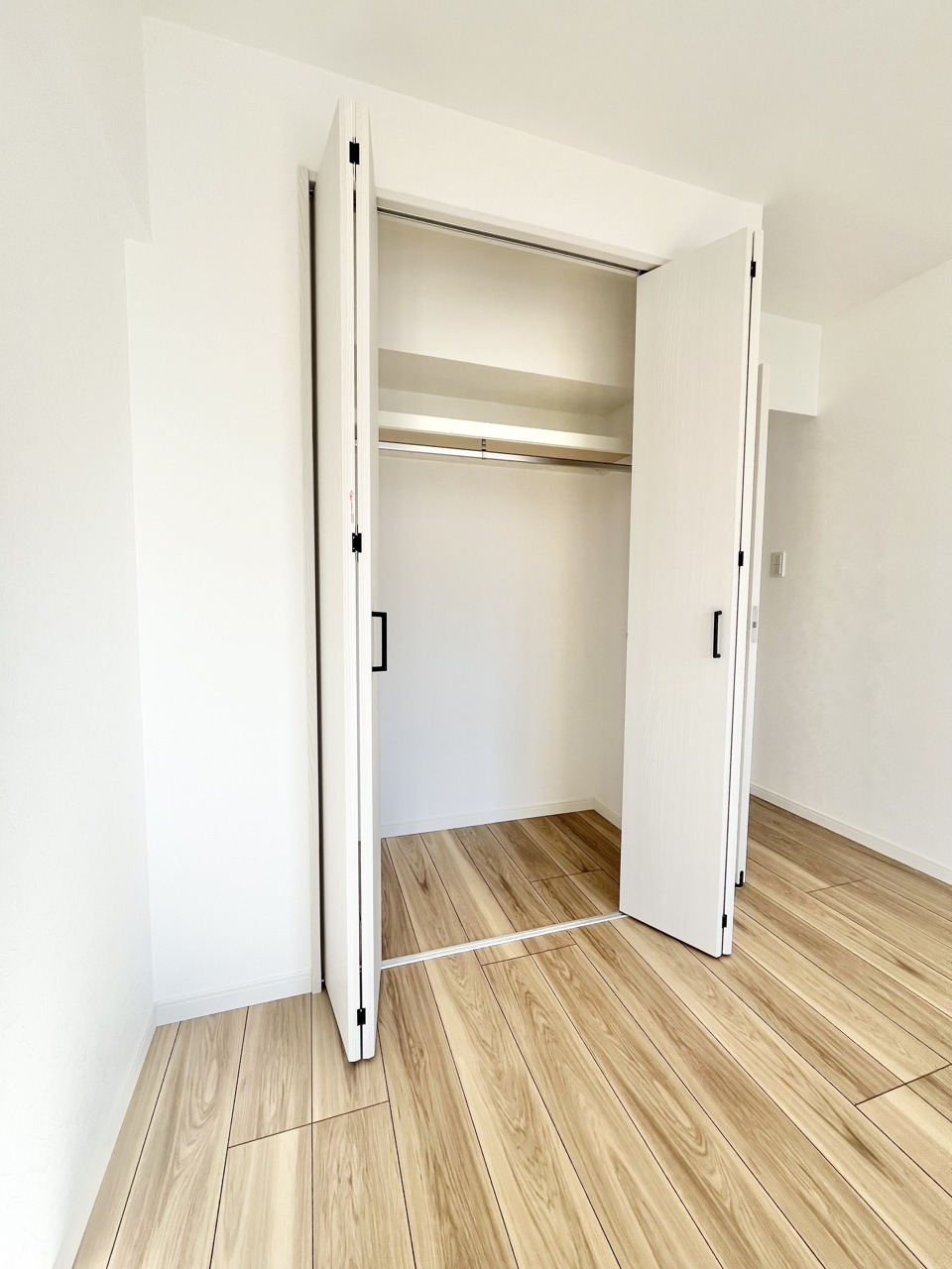 温もりある床材と白い壁が調和する、心地よい空間