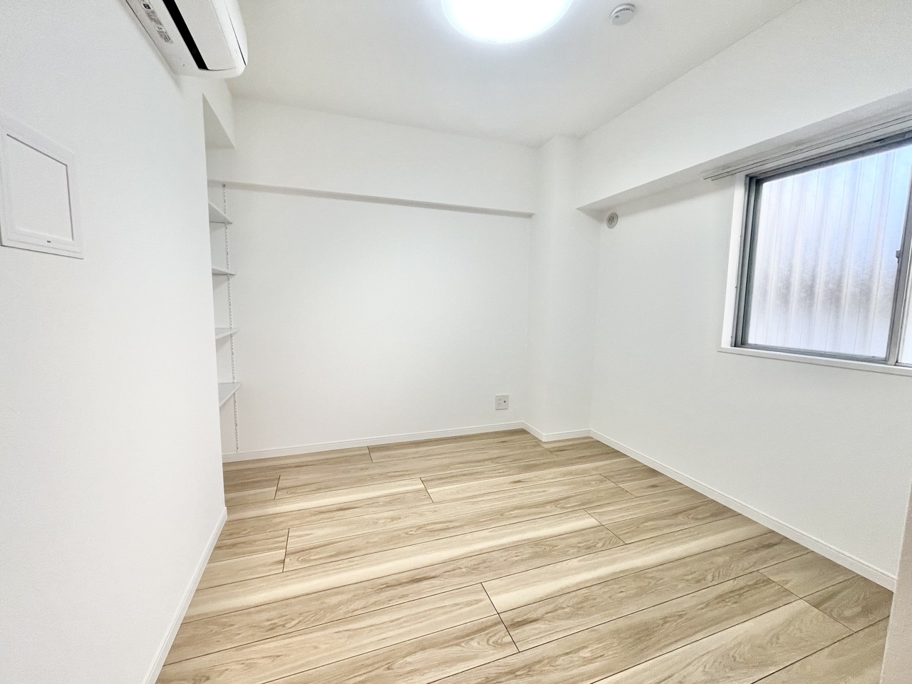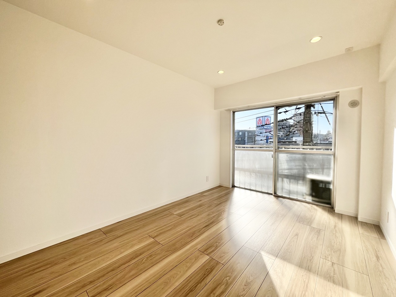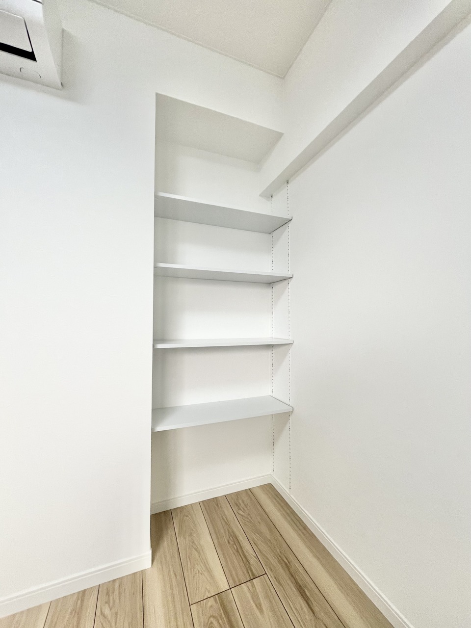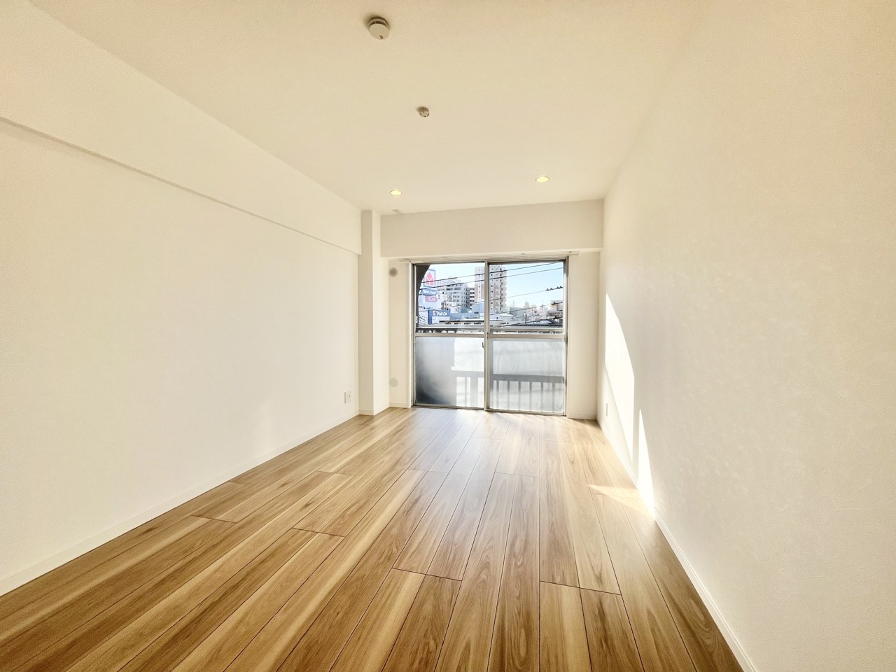温もりある床材と白い壁が調和する、心地よい空間