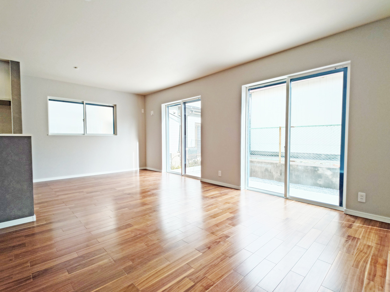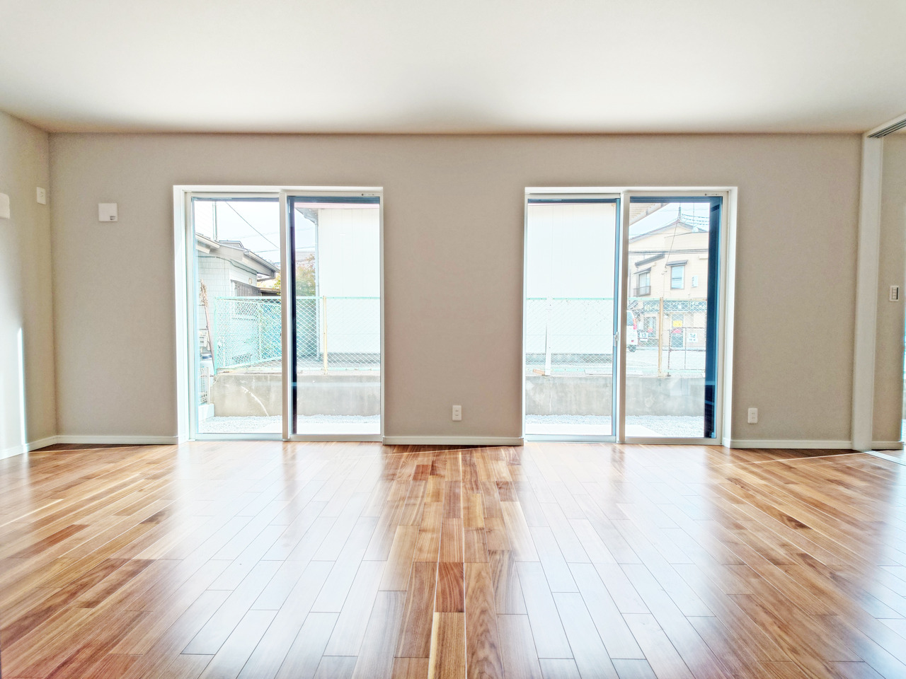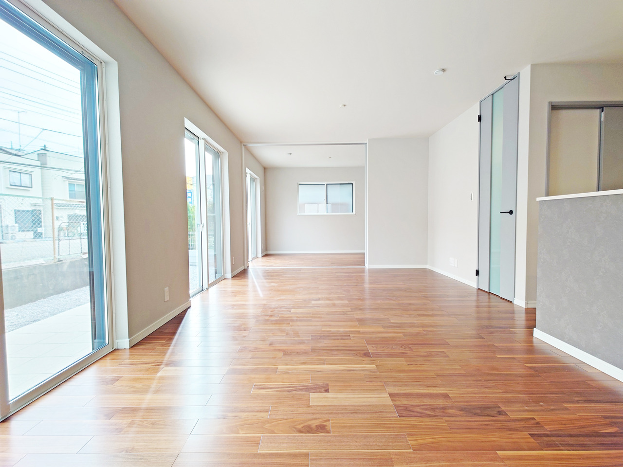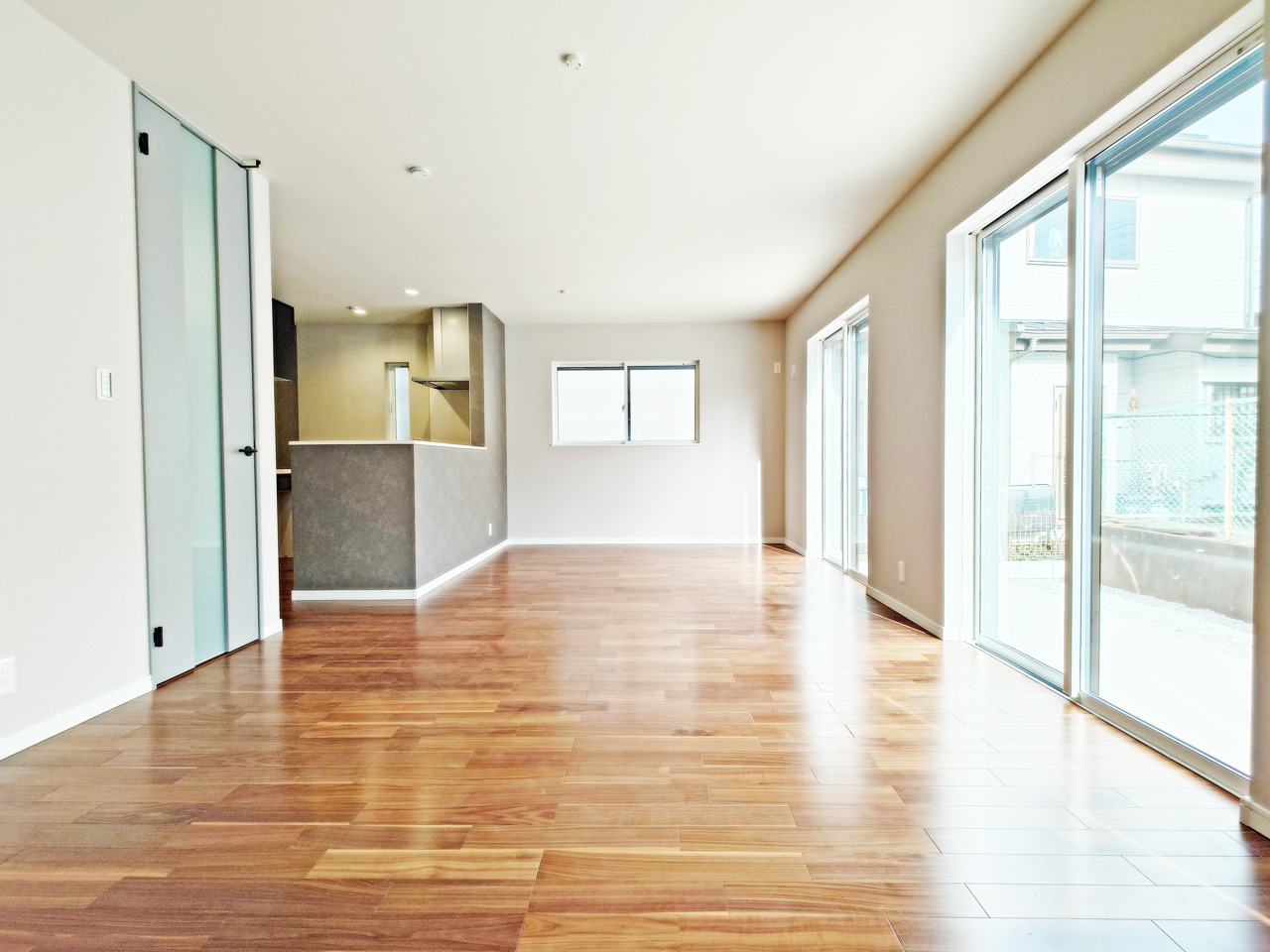 大きな開口部から明るい光が差し込むリビング。日中の室内の明るさがこの部屋の魅力です。