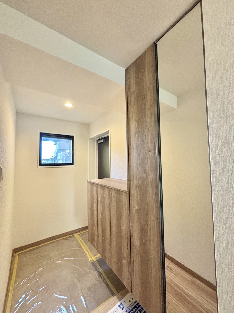 明るく開放的な玄関、靴の脱ぎ履きもしやすく、収納も豊富でご家族皆様の靴をスッキリ収納できます。
