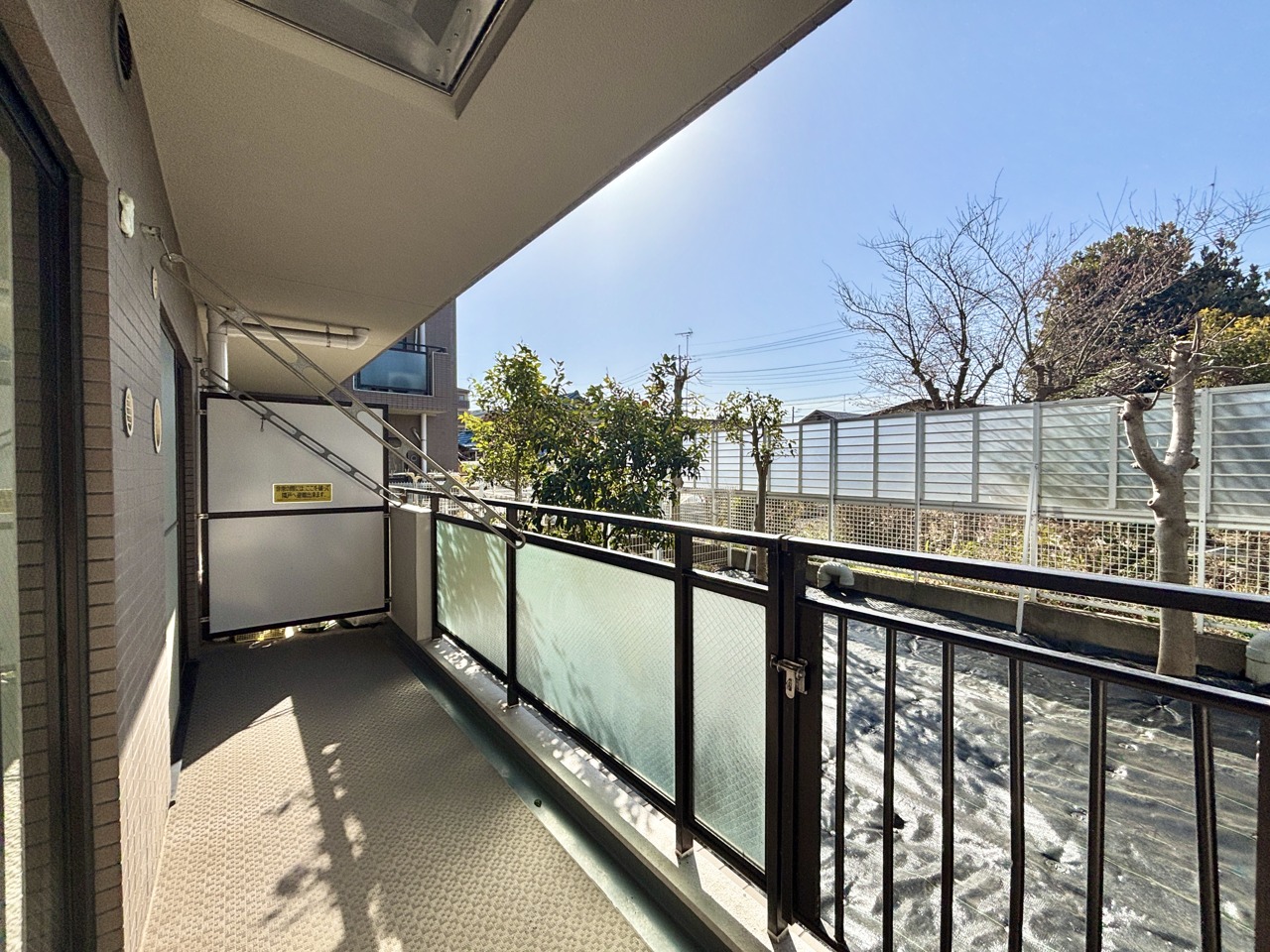 陽ざしが差込む明るいバルコニー。奥行きのあるバルコニーはお洗濯時に助かります。