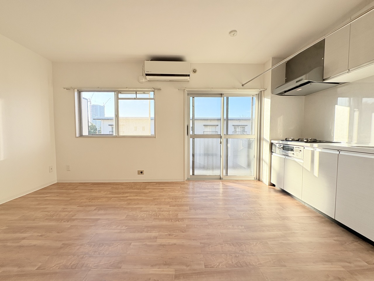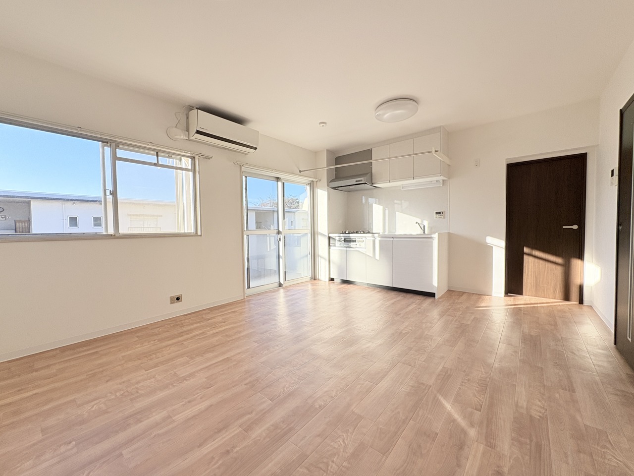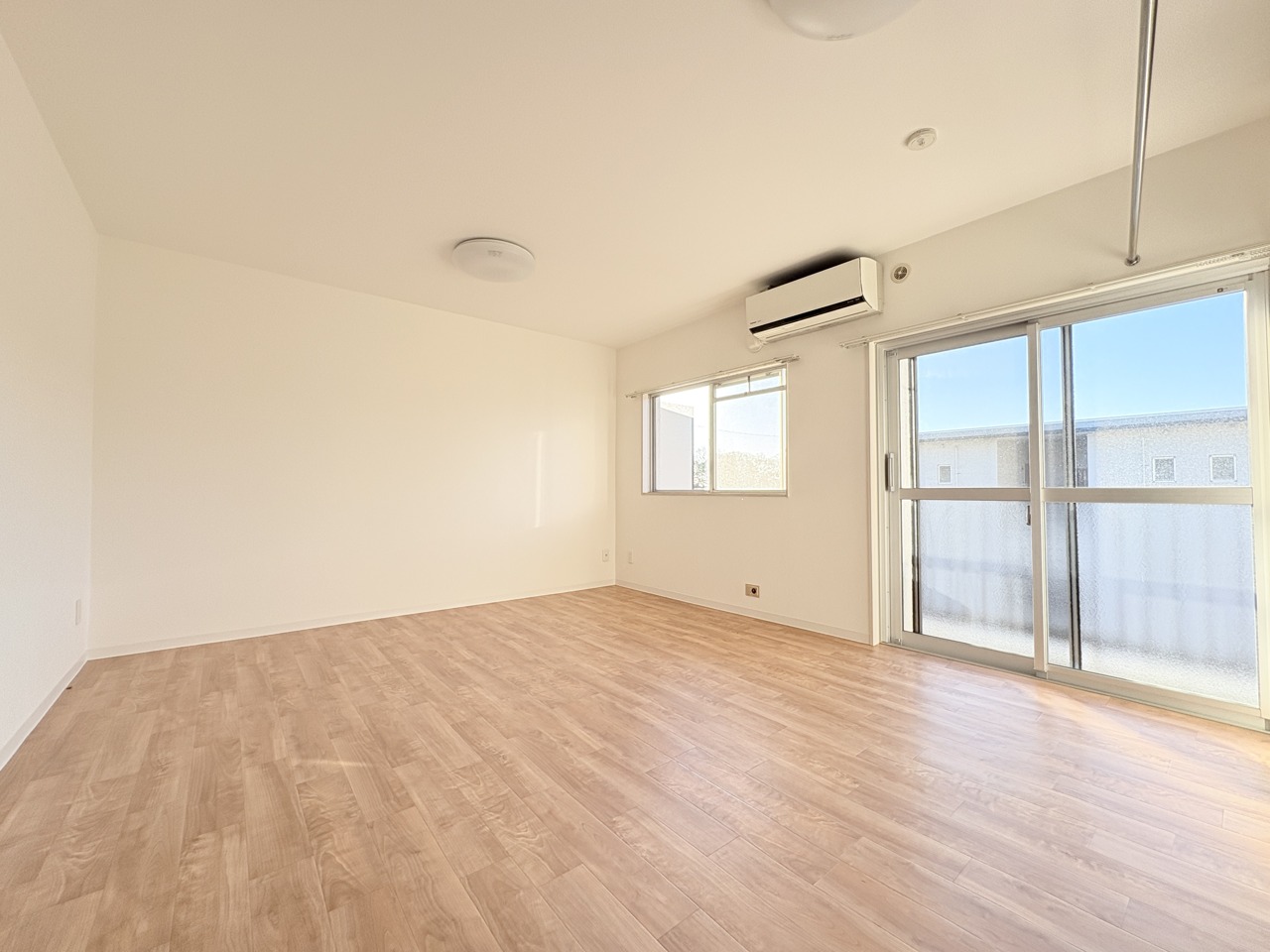 大きな開口部から明るい光が差し込む、日中の室内の明るさがこの部屋の魅力です。