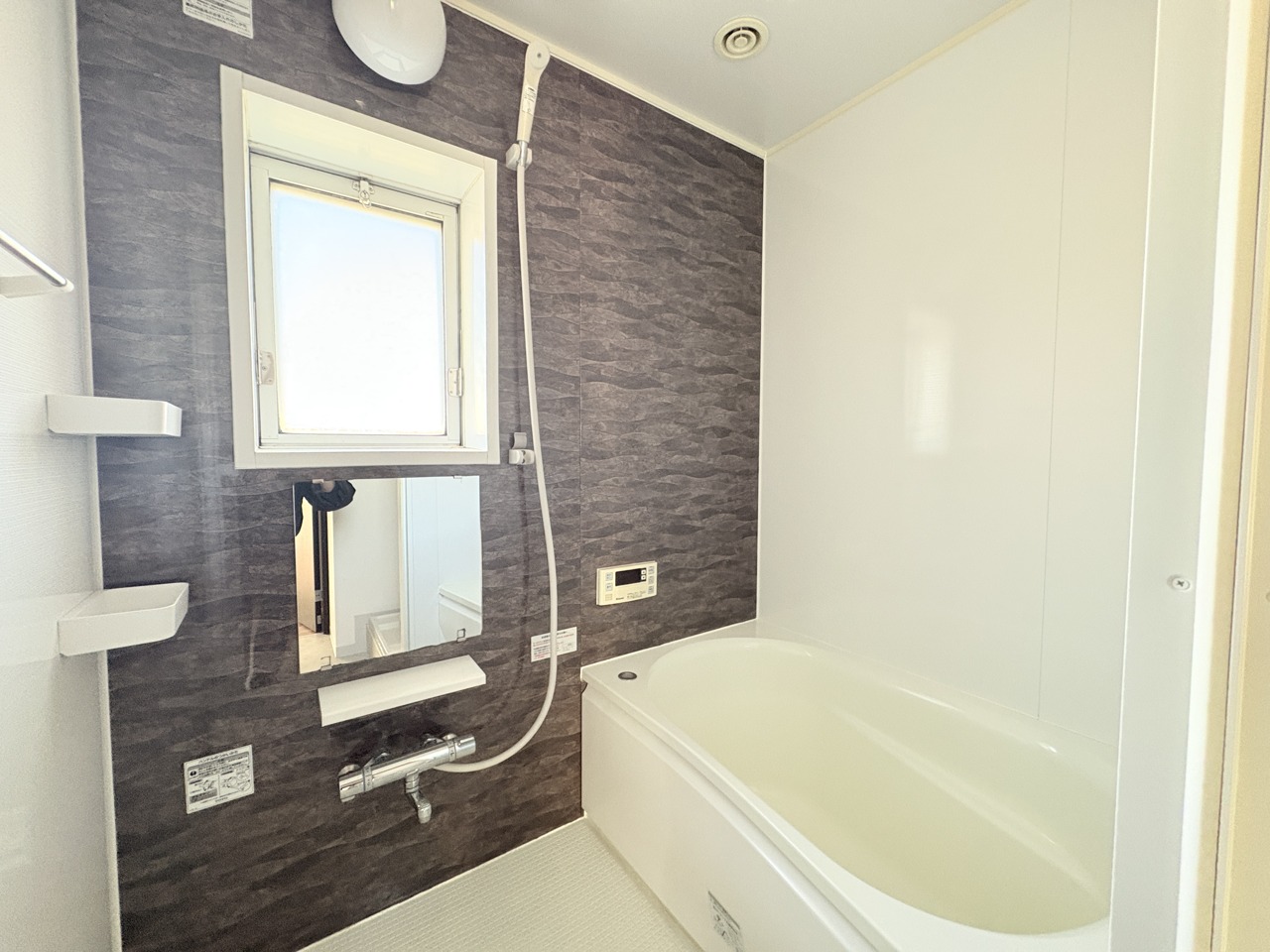 落ち着いた色味の浴室で1日の疲れをゆっくりと癒してください。