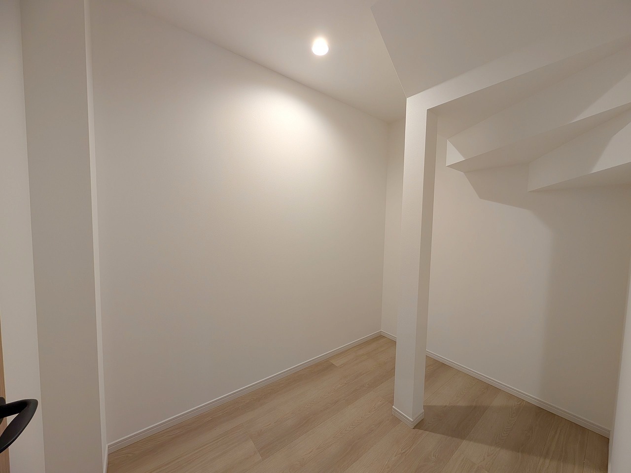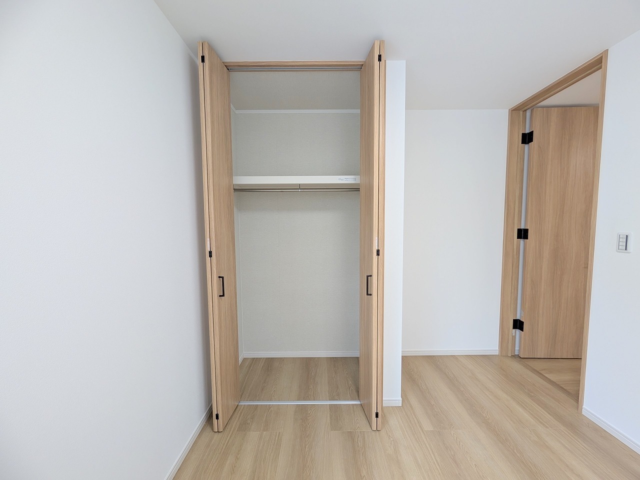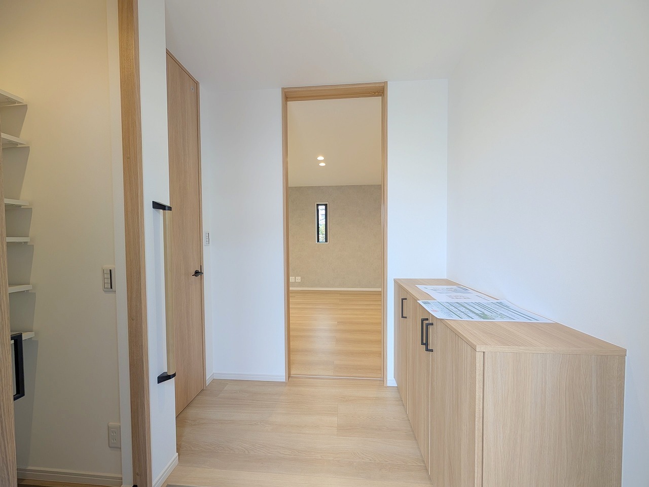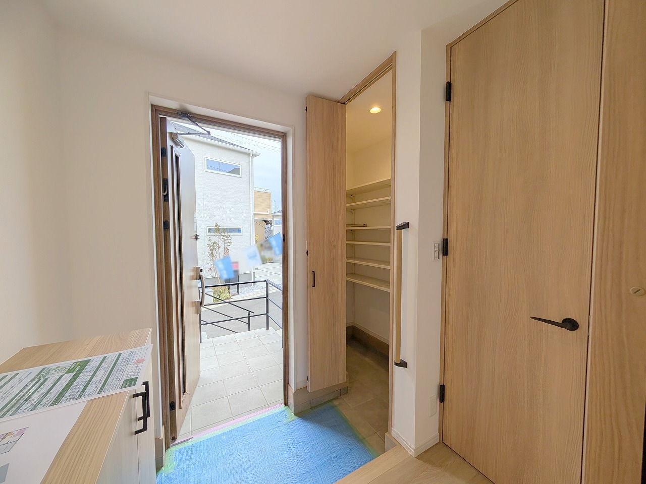 玄関横にシューズインクローク付き、雨具や三輪車を置いても余裕の広さ。