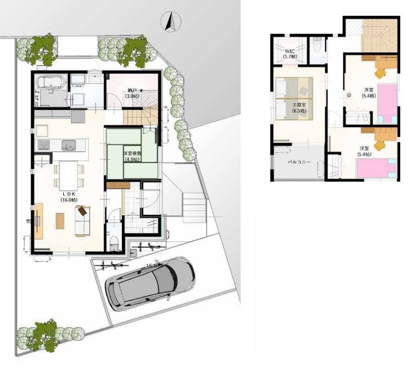 - ※完成予想図はいずれも外構、植栽、外観等実際のものとは多少異なることがあります。