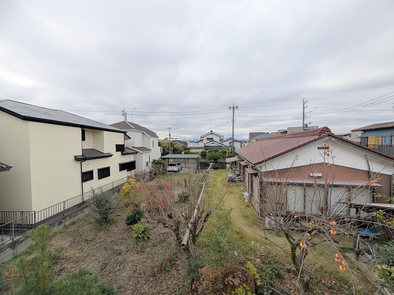住宅街の2階南向きのお部屋、日当たりはご覧のとおり良好です。