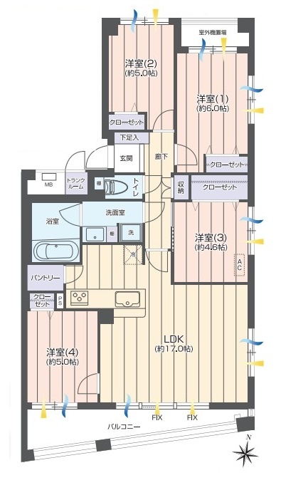 | 間取 | 4LDK (LDK17.0帖、洋室6帖、洋室5帖、洋室5帖、洋室4.6帖) | ||