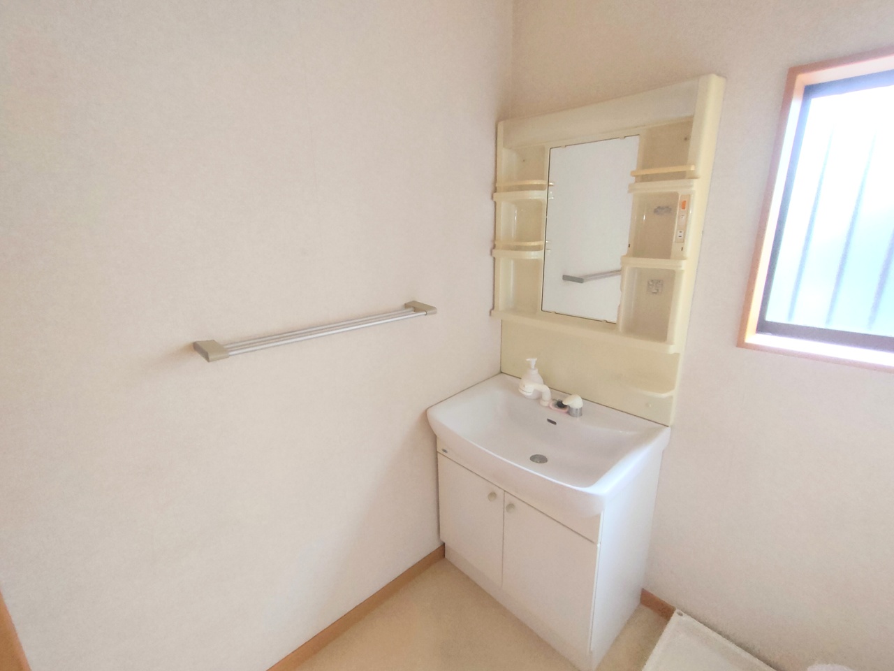 生活用品のレイアウトが見やすい一面鏡タイプの洗面化粧台。