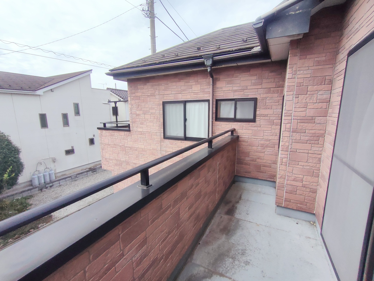 南側に面したバルコニー、カラッと洗濯物が乾きそう。