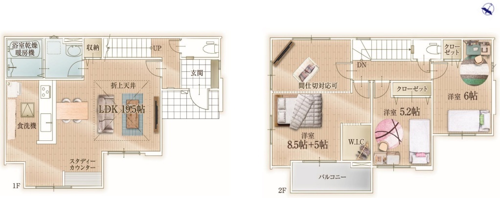 - ※完成予想図はいずれも外構、植栽、外観等実際のものとは多少異なることがあります。