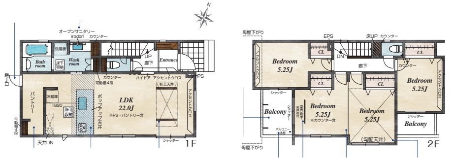 | 間取 | 3LDK (LDK22帖、洋室10.5帖、洋室5.25帖、洋室5.25帖) | ||