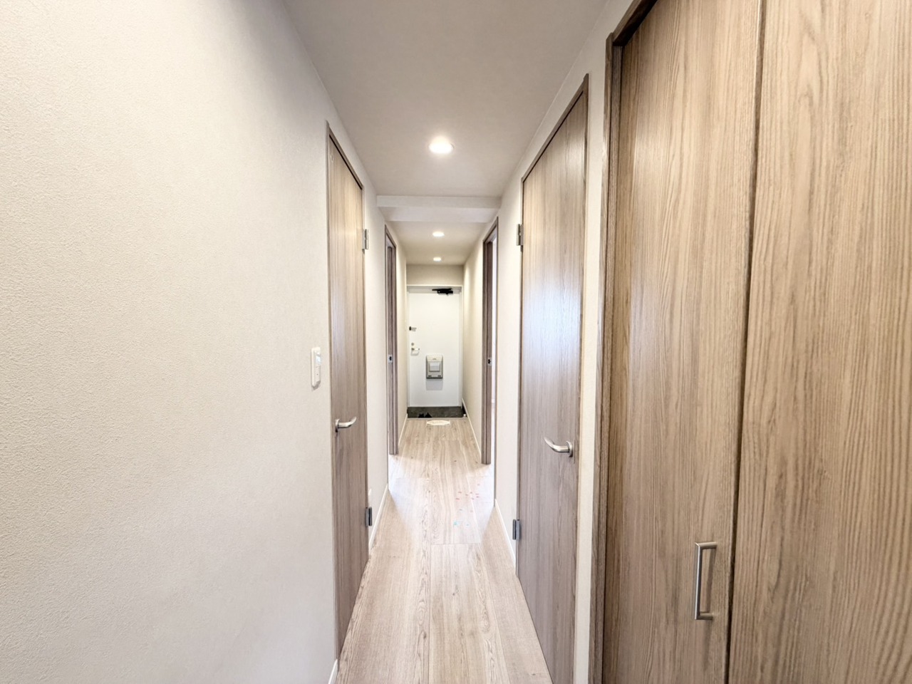 洗練された木目調の建具が、落ち着きと温もりを添える空間。