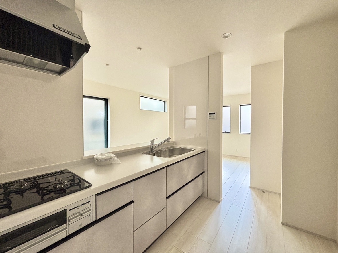 明るい光が降り注ぐ窓があるキッチンはお料理を作る時の気持ちもいつもより明るくなります。近くに窓があるので換気もしやすいですね。