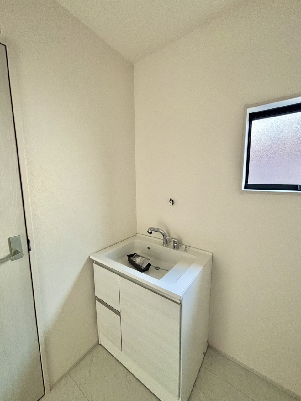三面鏡スタイルの洗面台が入ります。 お出かけ前の身だしなみに一歩差がつく三面鏡。ミラー裏にはたっぷり収納もございます。