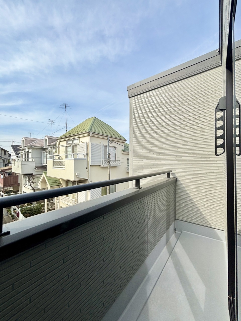 陽ざしが差込む明るいバルコニー。奥行きのあるバルコニーはお洗濯時に助かります。