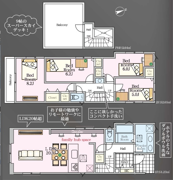| 間取 | 4LDK (LDK20.3帖、洋室8.2帖、洋室6.2帖、洋室6帖、洋室5帖) | ||