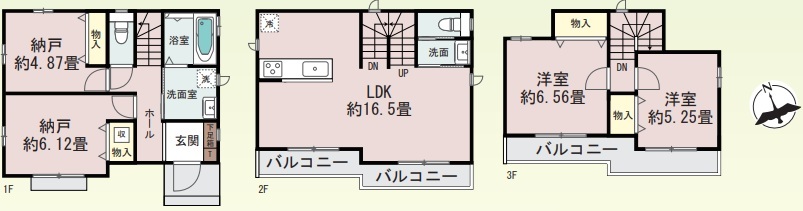 | 間取 | 2SLDK + 2SSLDK (LDK16.5帖、洋室6.56帖、洋室5.25帖、S6.12帖、S4.87帖) | ||