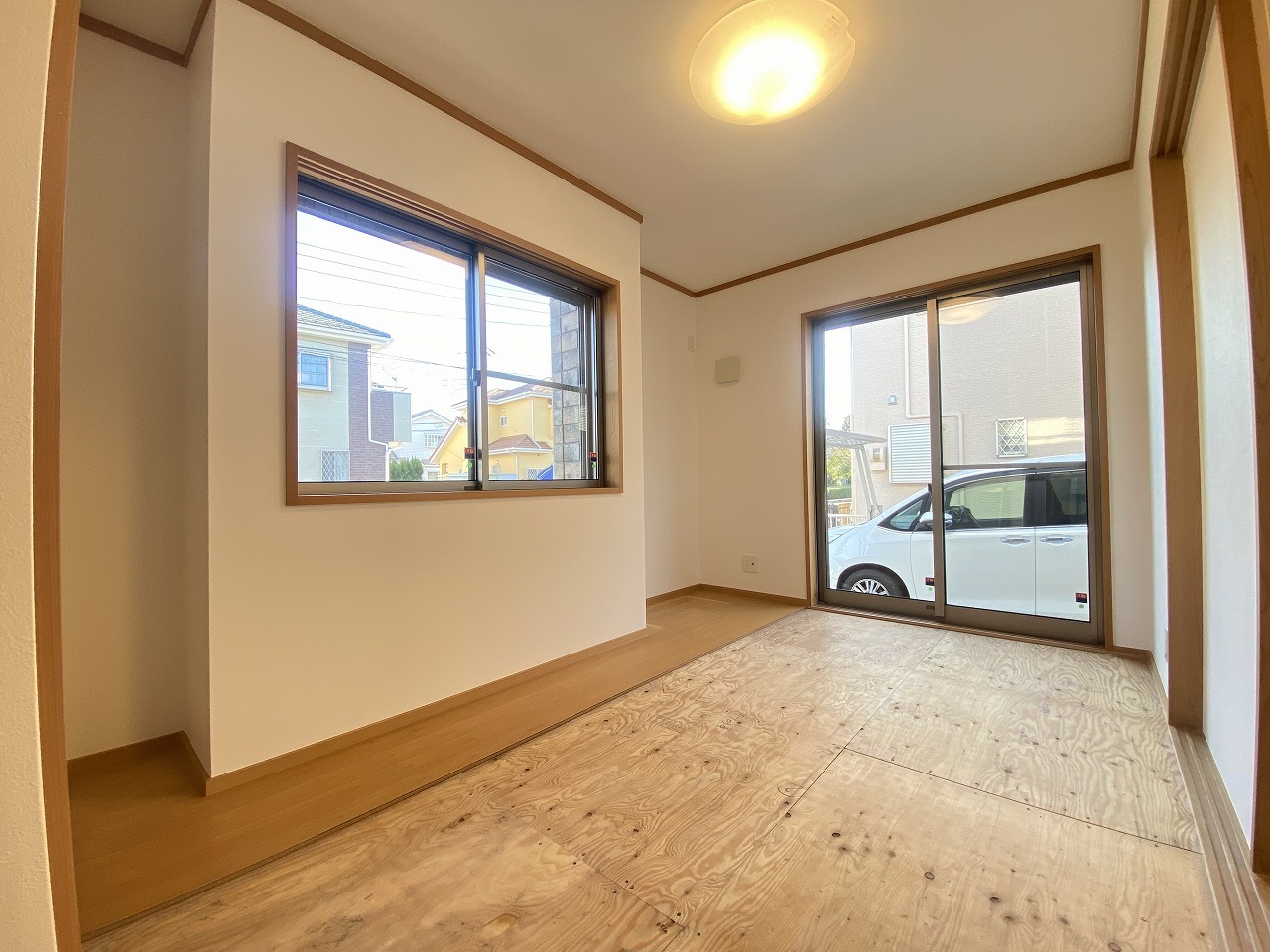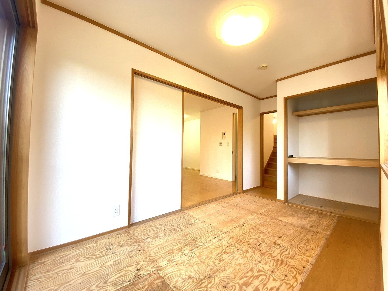 井草の香る和室、日焼け対策のため畳は後日に配置します。