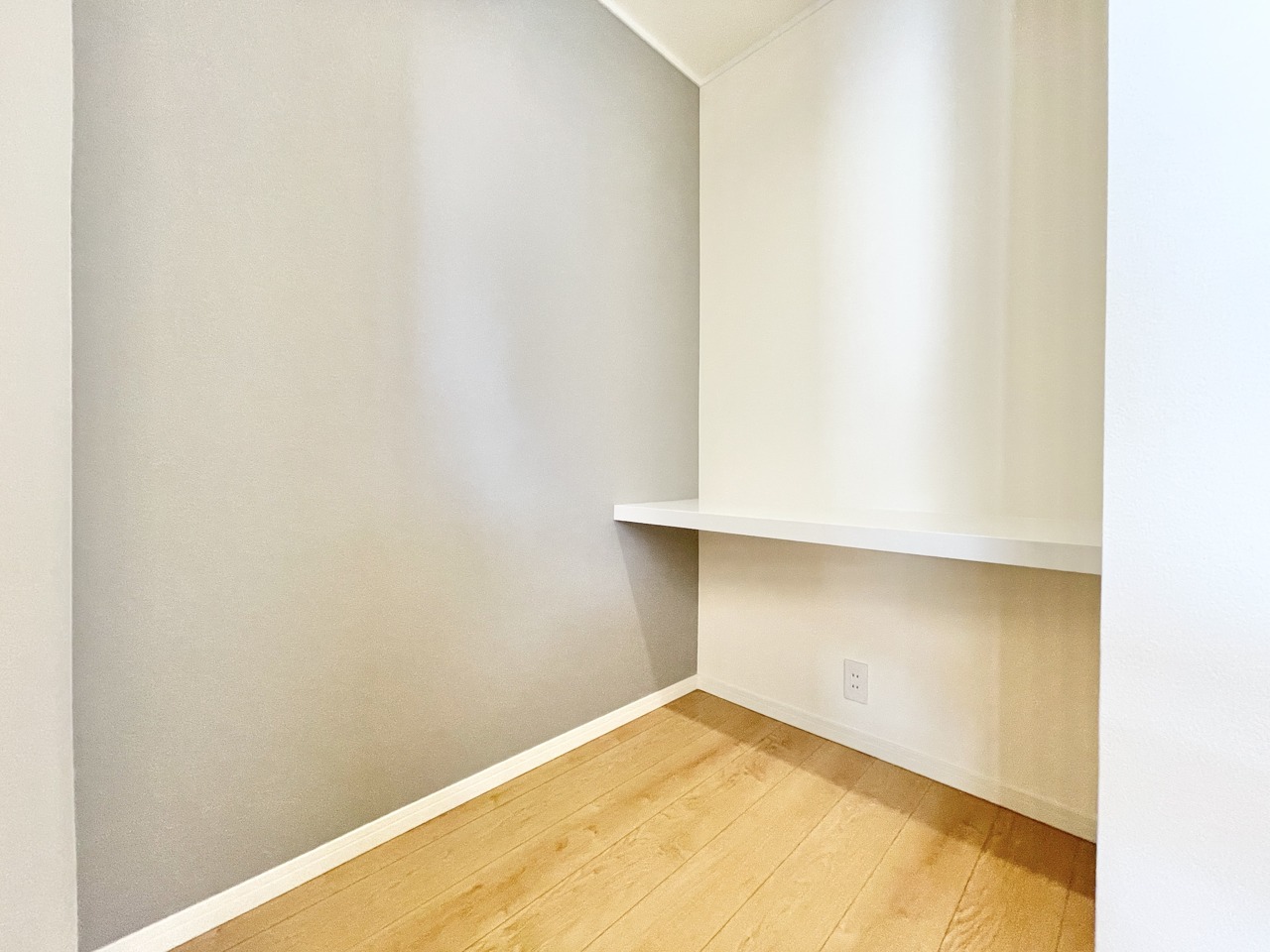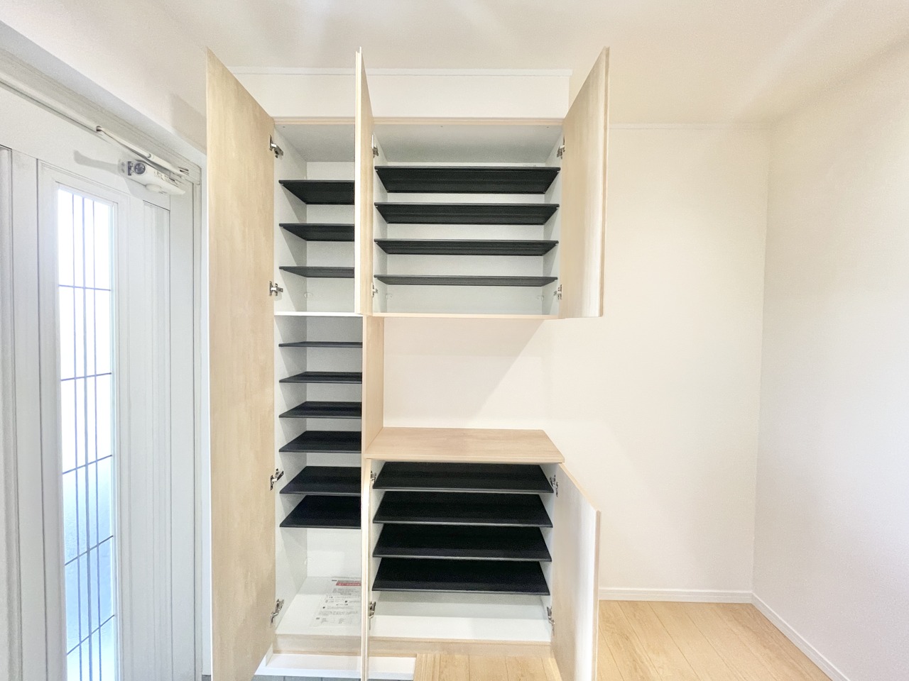 さっと物がしまえる共用部分の収納、新生活で大活躍するでしょう。 整然と並んだ収納が、心地よい広がりを生み出す空間。
