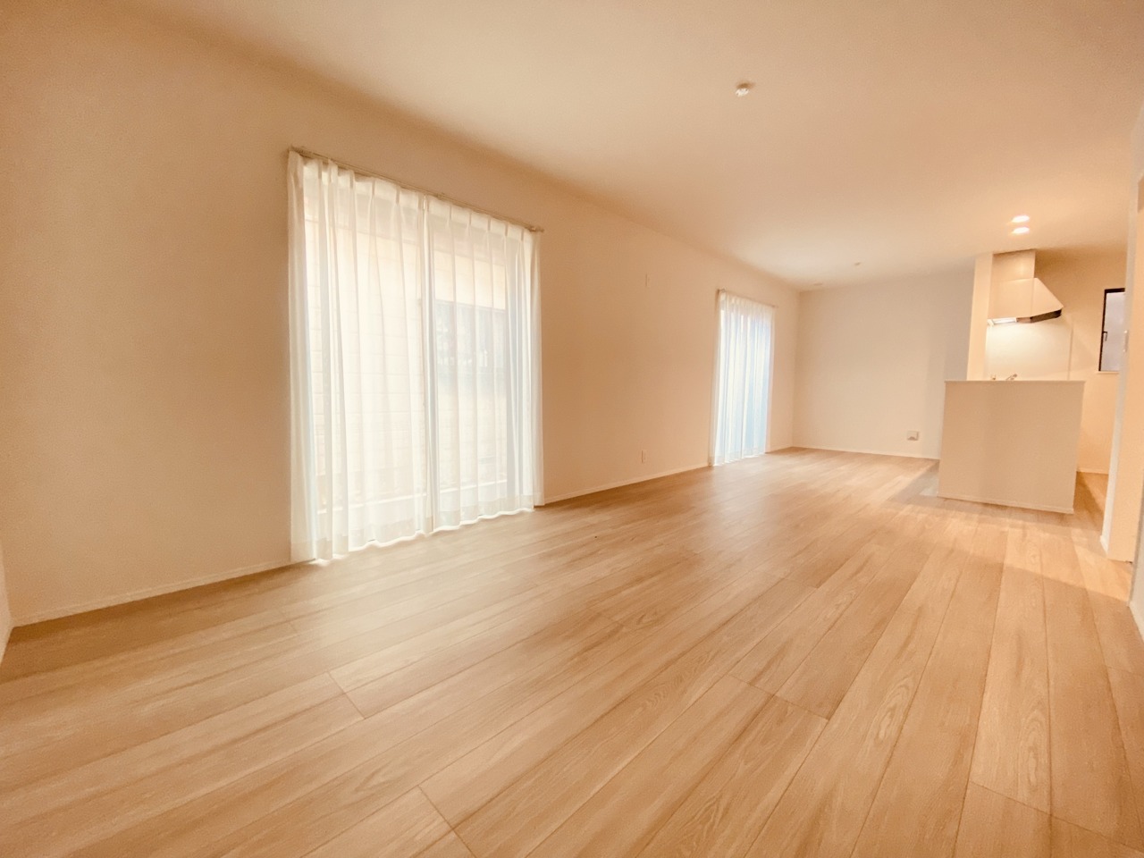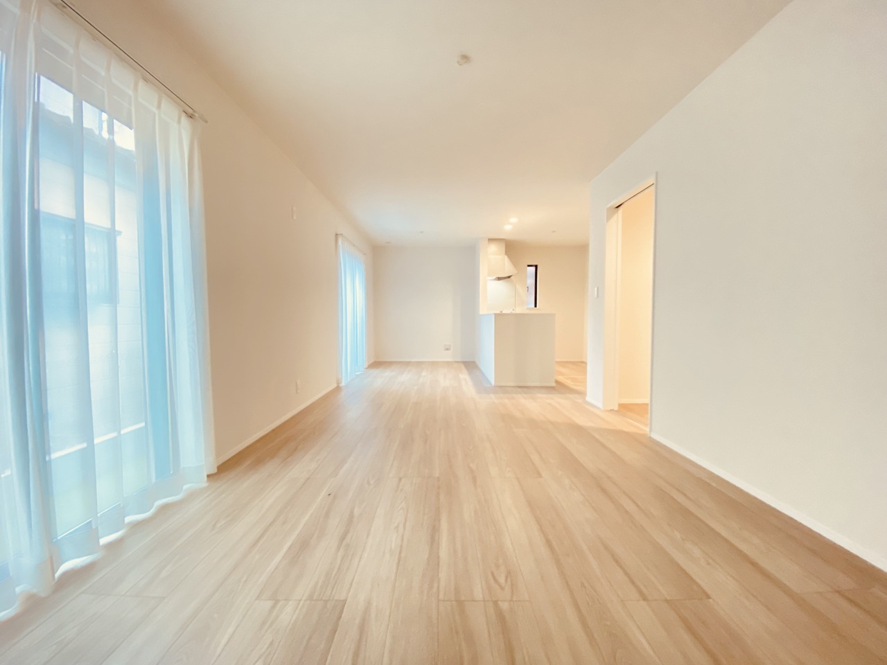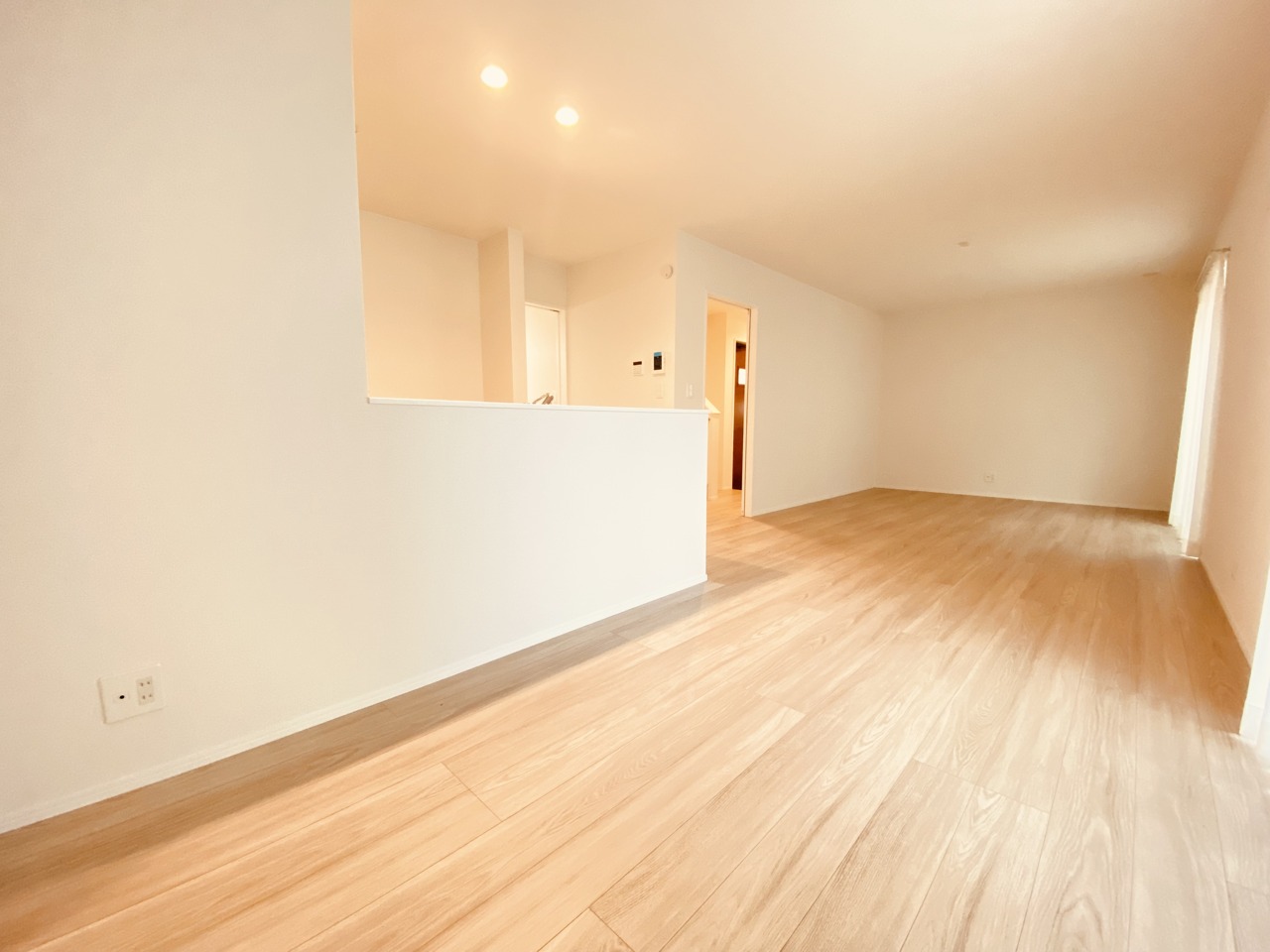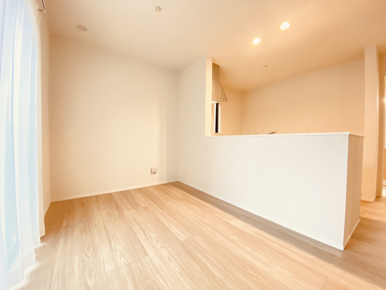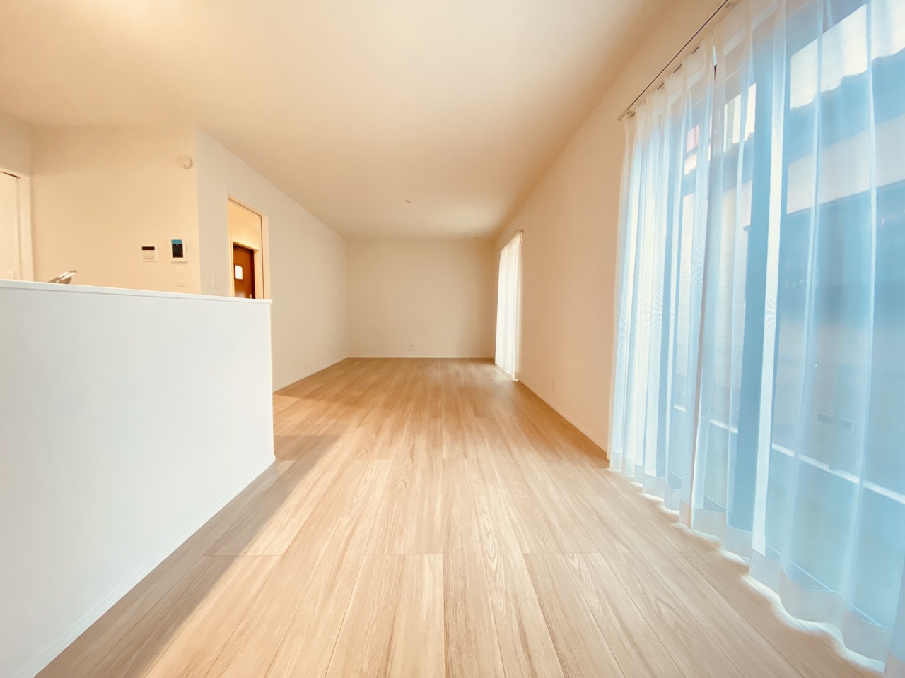 大きな開口部から明るい光が差し込む、日中の室内の明るさがこの部屋の魅力です。