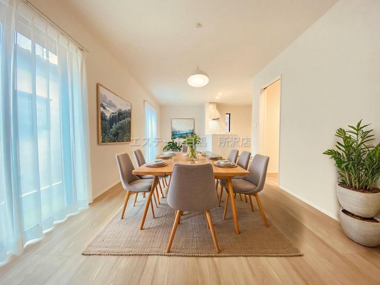 家族団欒のリビング。陽光差し込む食卓には家族の会話とスマイルが溢れます。いつまでもここで食卓を囲みたくなる、そう感じさせてくれるスペース。